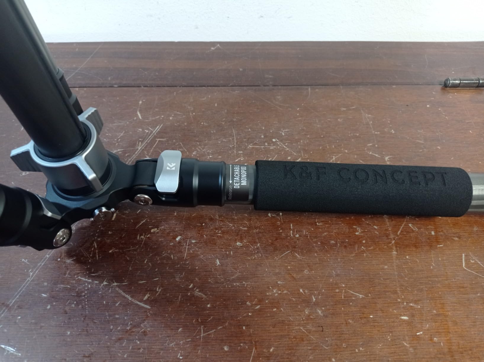 But the extraordinary thing about this tripod is that it can be disassembled to create a monopod.