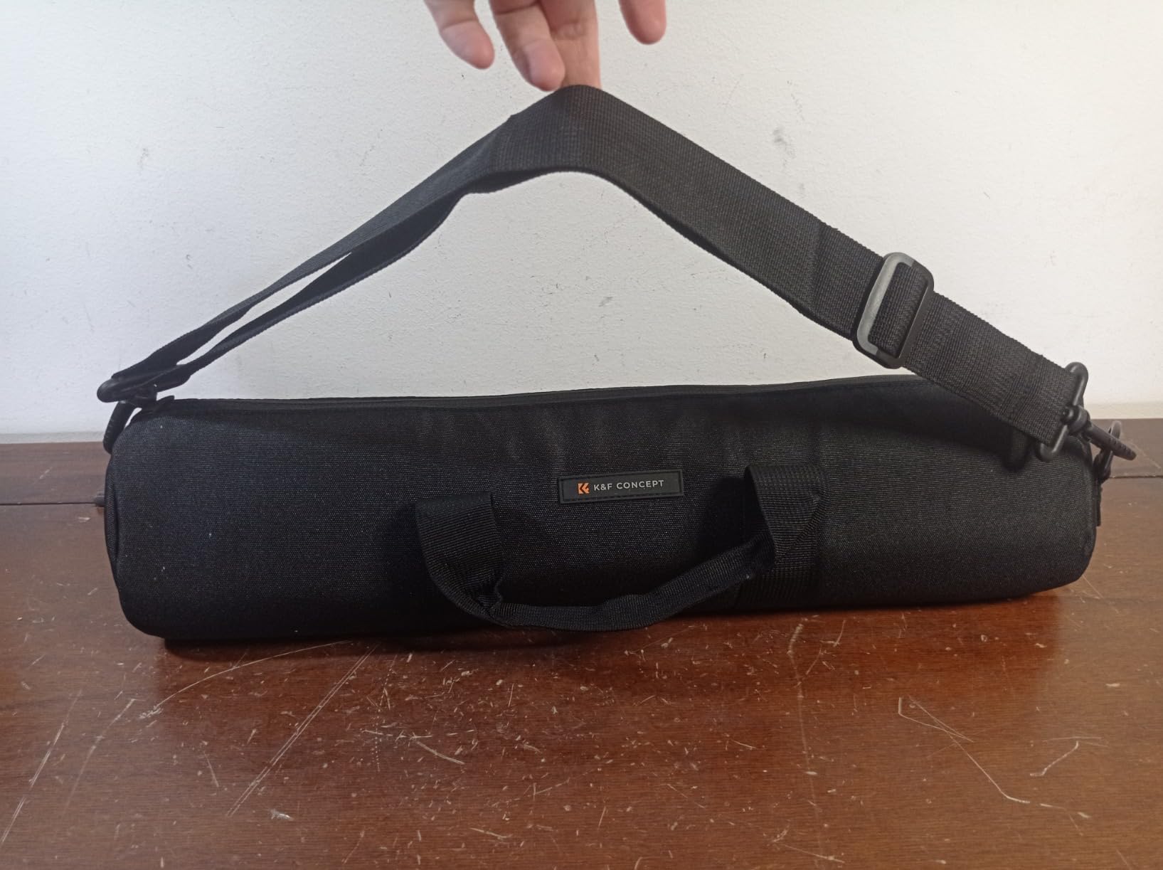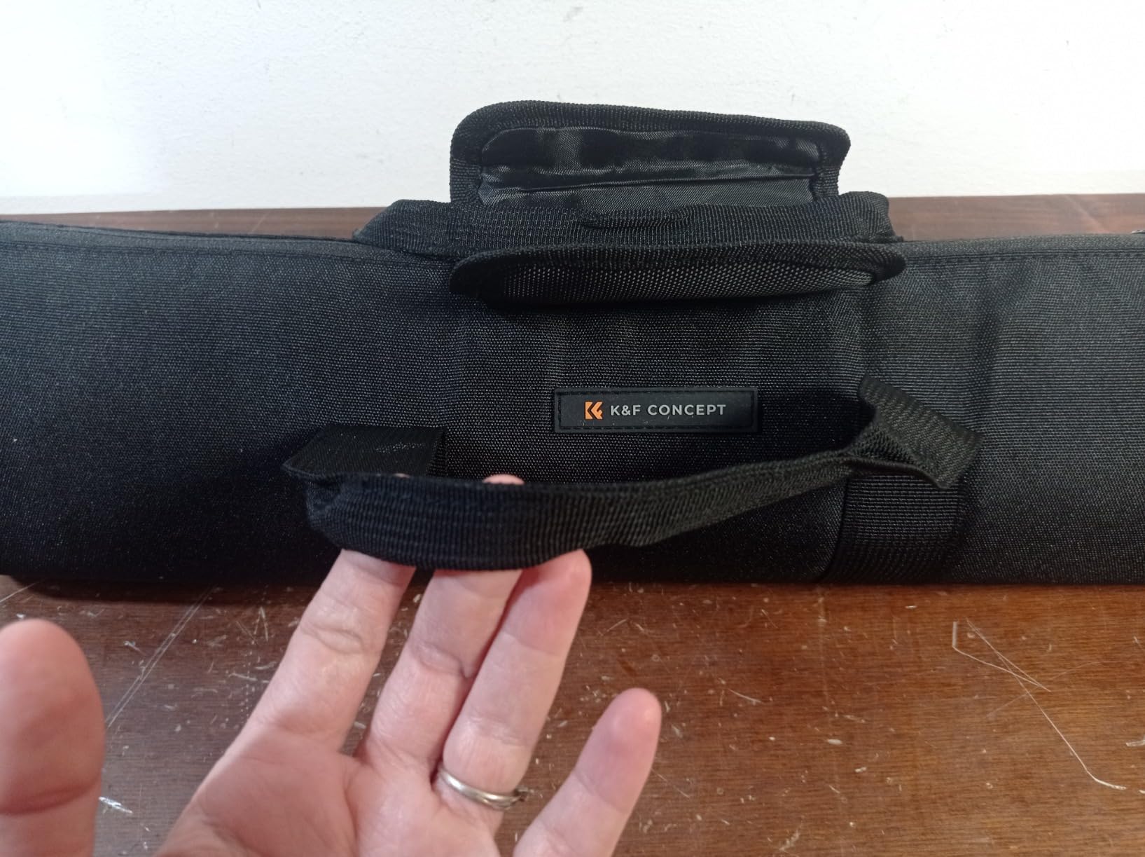 It has two practical handles held together with Velcro, but inside the case I also found a shoulder strap so I could carry the tripod over my shoulder.