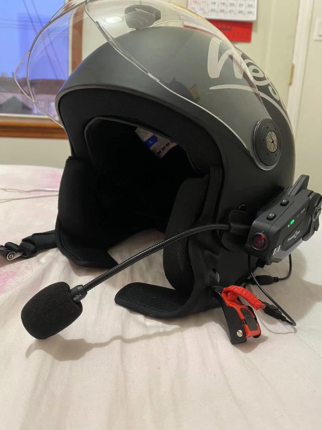 I received it in the mail real nice box with the set up for both mics and sticky tape to attach everything. Which is what really nice everything had two different ways to attach to your helmet. The sounds is very nice in the speakers and the little mic. The video quality is also very nice. Hands down worth it.