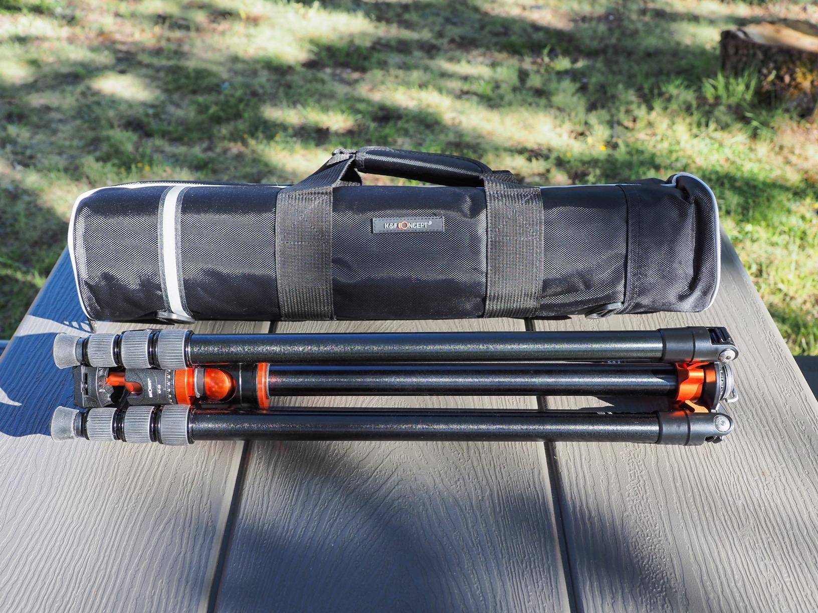 I find the K&F Concept SA254T1 to be excellent value for money. The tripod makes a very high-quality impression in every respect, from the locking clips on the tripod legs to the dampened feet.