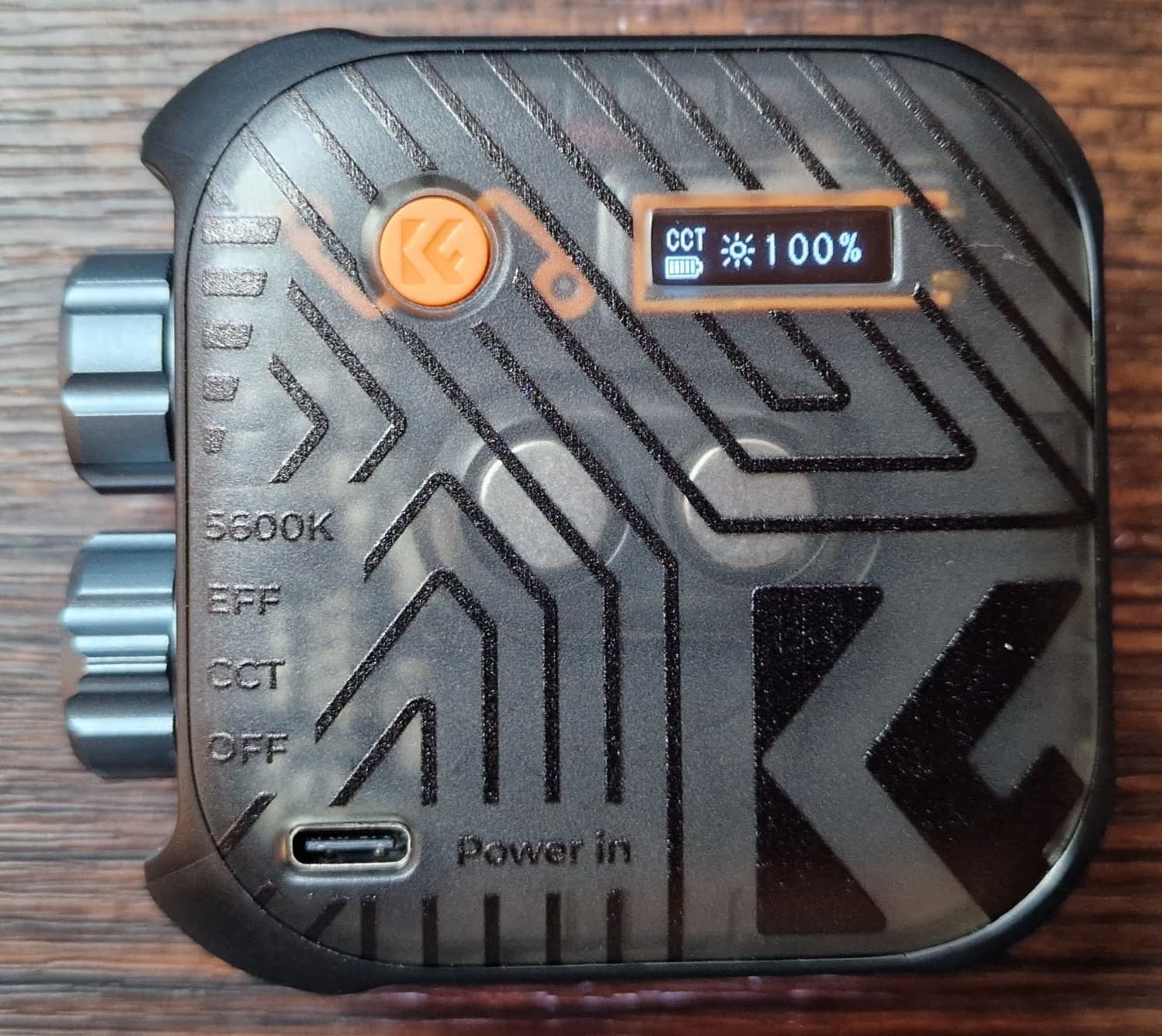 As soon as I opened the box I knew I was going to like the K&F light - it is great quality, using plastics which are robust and feel good, the button and switches all feel great and function perfectly. On the back are mounted two magnets which give plenty of adhesion for quickly slapping it on to a metal post, to save on a tripod etc. It is also supplied with a Hot shoe which can be attached to the top or bottom vie 1/4" mounting holes.