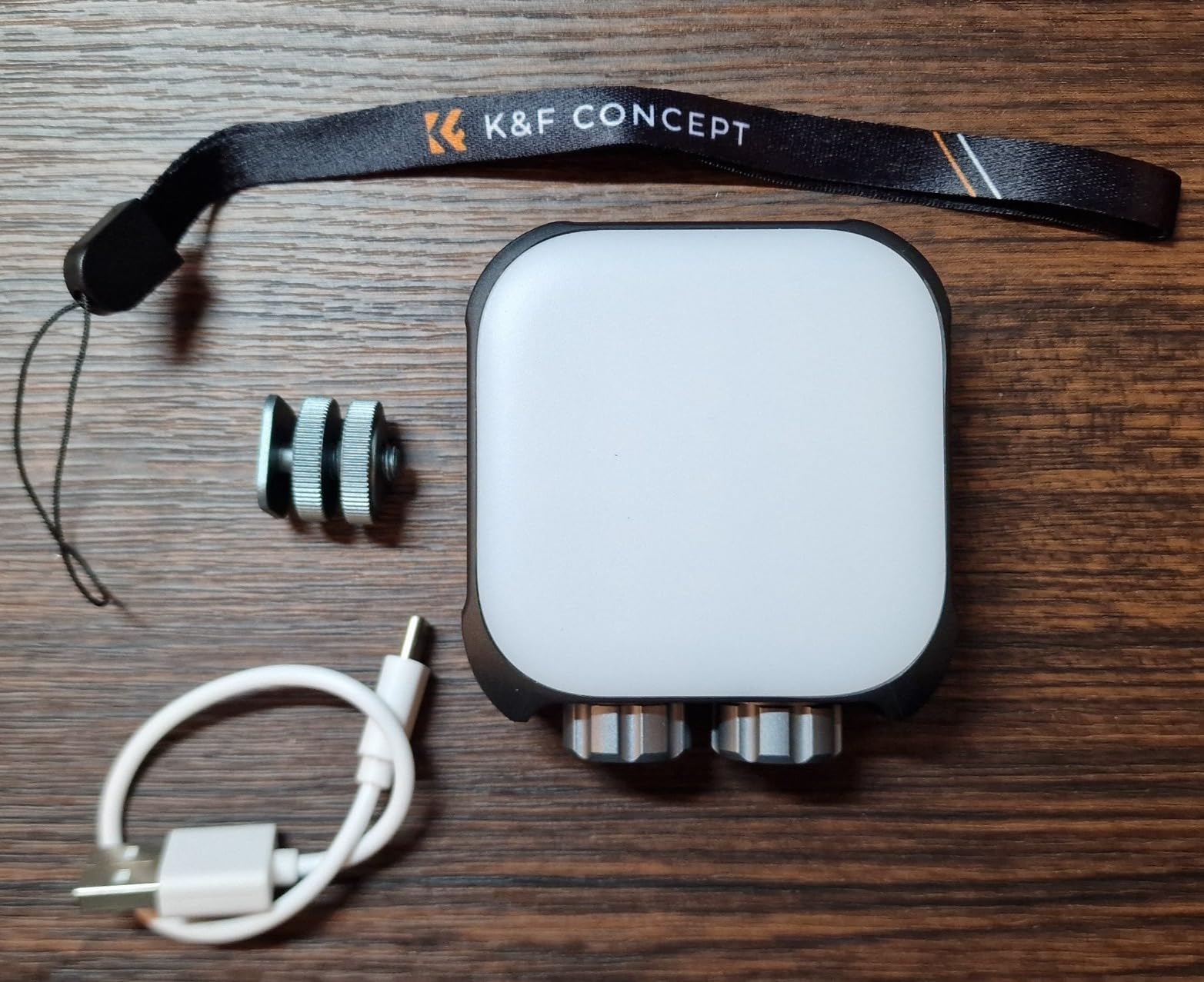 Love this K&F Concept Magnetic Light! It's super compact (think credit card size) and throws in a built-in magnet for easy use. Perfect for throwing in your bag for any adventure. Despite its size, it packs a punch with adjustable color temperature and 15 special effects! The controls are user-friendly, and the battery lasts a good while (2-8 hours) depending on the intensity. Great for vlogging, product shots, or creative effects. Highly recommend, especially for the price!