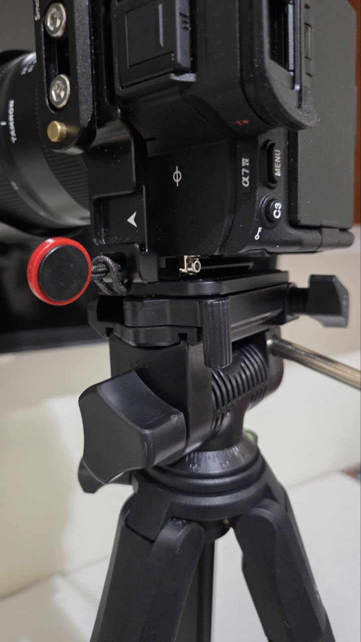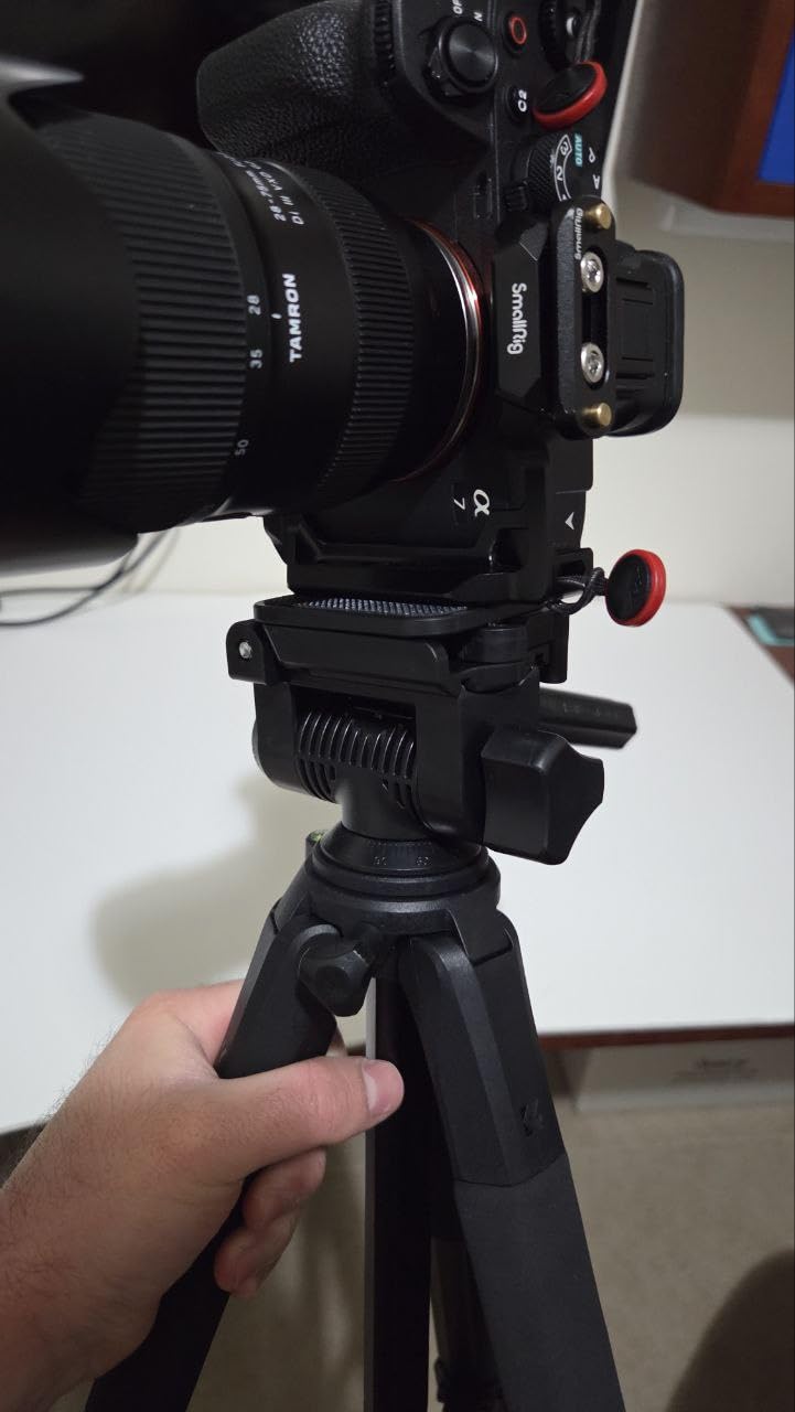 This also has a hook for a counterweight to hang from that is super solid. I was able to easily hang some ballast from it and it definitely improves stability. Dialing everything to keep a tight and smooth pan/tilt was very easy. It doesn't skip or jump at all, it is perfect.