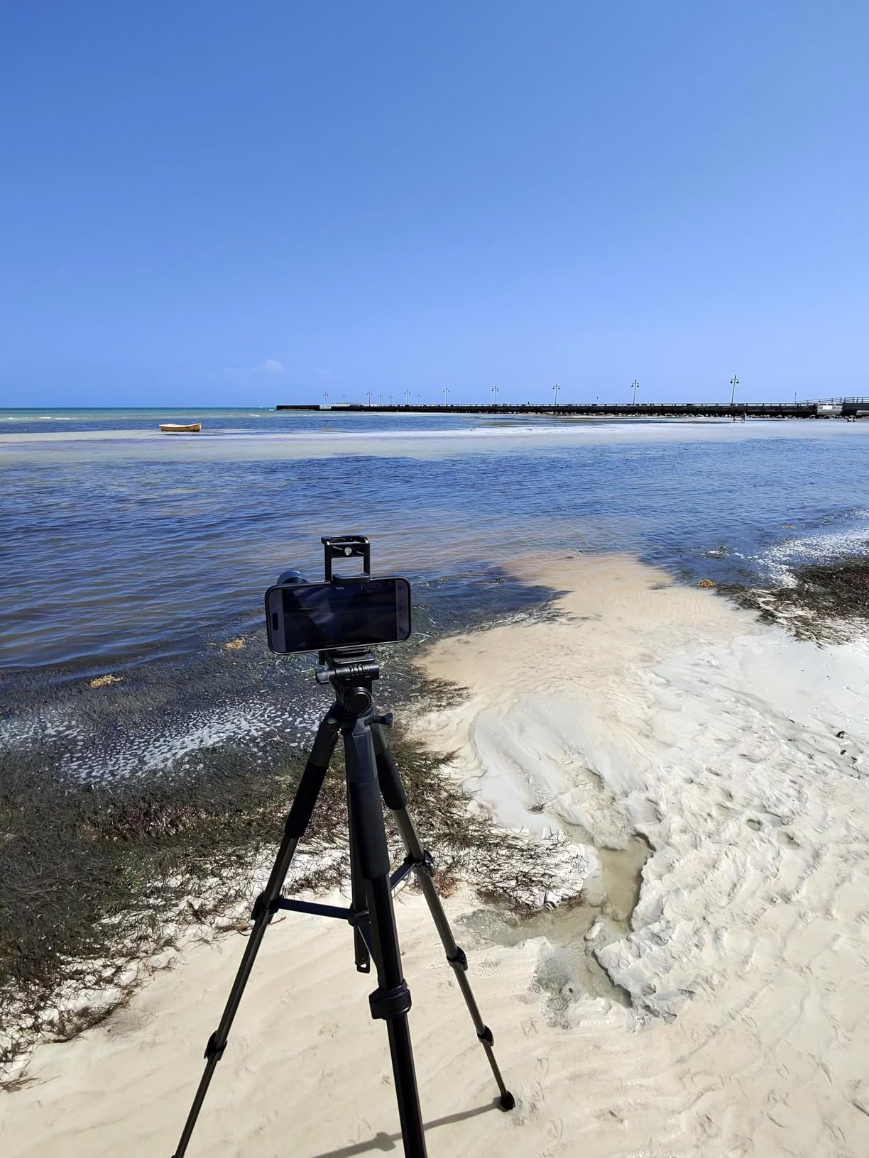 So today, I went to Key West's seaside with the XT and an iPhone, equipped with the 240 mm tele lens from Reeflex. The wind was 14-16 mph, which on the Beaufort scale translates to "Small waves, becoming longer seas.".A small boat was 100-200 meters away, so I took it as a target for both cameras. The boat was moving up and rolling quite a bit, so keep this in account while checking the results. I decided to move the tripod up to head level to accentuate the risk of wobbling. I attached two crops showing how both cameras captured the boat details and texture. Both images are decent given the circumstances (distance, wind, and the tripod's height).