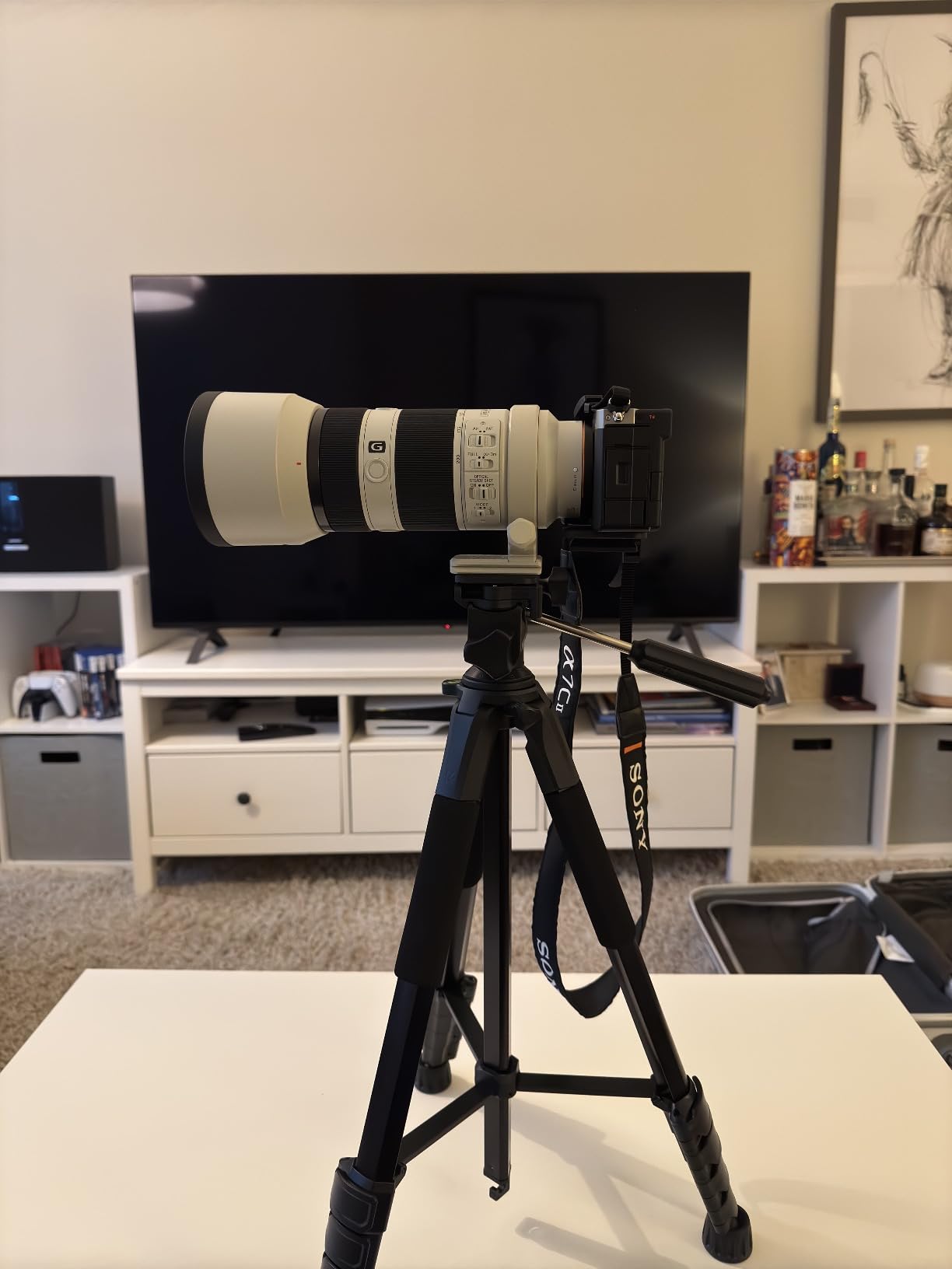I liked the quality of the tripod; it feels solid and is lightweight. It comes with a phone adapter and a remote control for taking pictures. It works wonderfully with my Sony a7cii and my 70-200 lens. I highly recommend buying it.