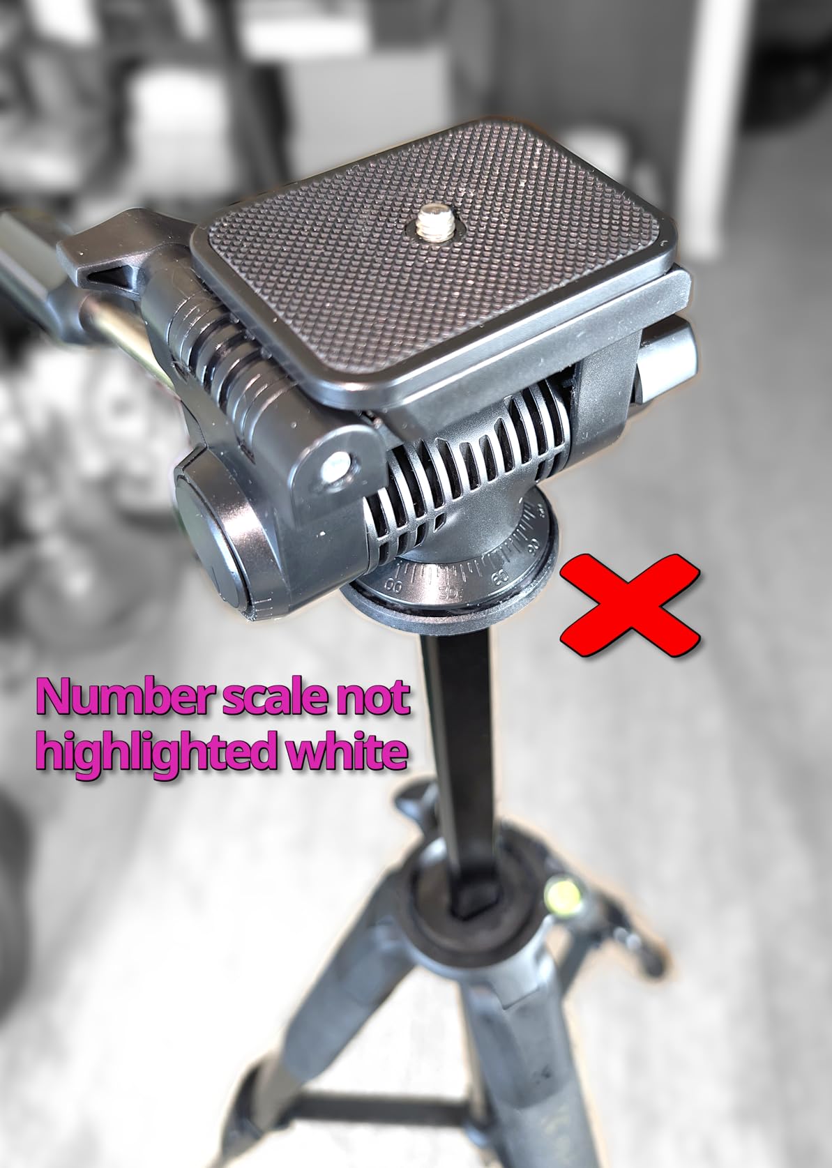 Con: The scale numbers on the pan head should have been highlighted in white to make it easier to see, as seen in the more expensive tripods.