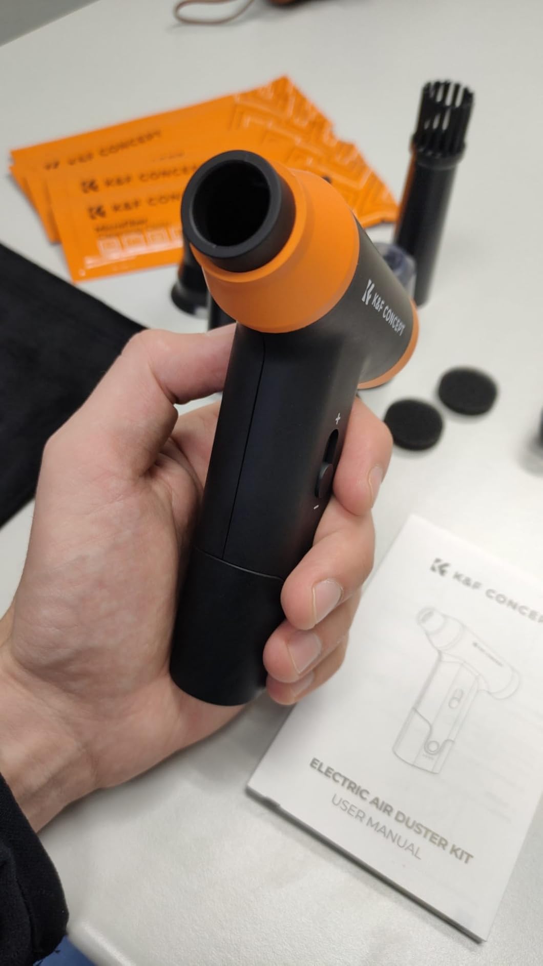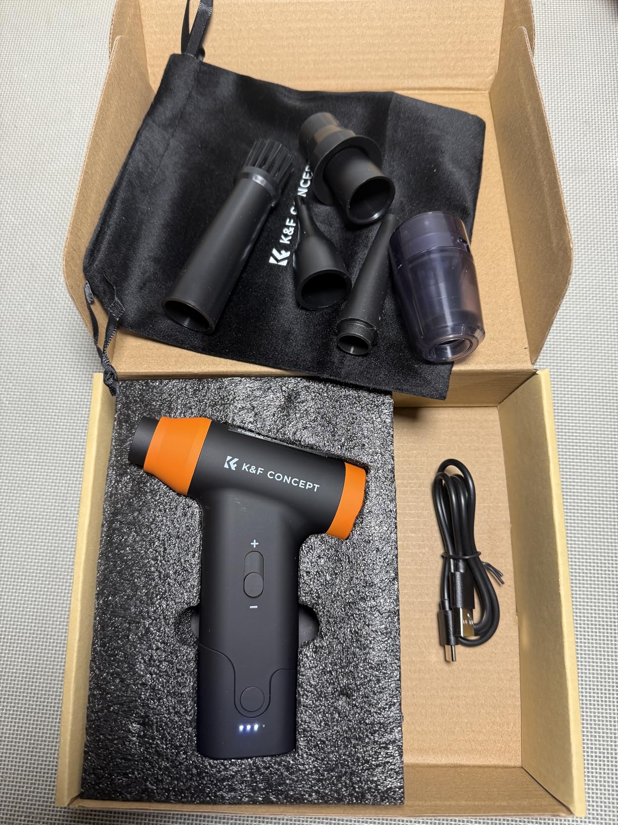 The product: This K&F Concept compressed air blower and vacuum is incredibly powerful, especially in blower mode. While not as powerful as a vacuum, it's sufficient for small jobs. With its 150,000 RPM, it removes even the most stubborn dust from keyboards, PCs, and even the hard-to-reach corners of my car. It's an eco-friendly and economical solution, replacing disposable compressed air cans, which are a waste of money. Plus, its 5000mAh battery lasts a long time and recharges quickly.
