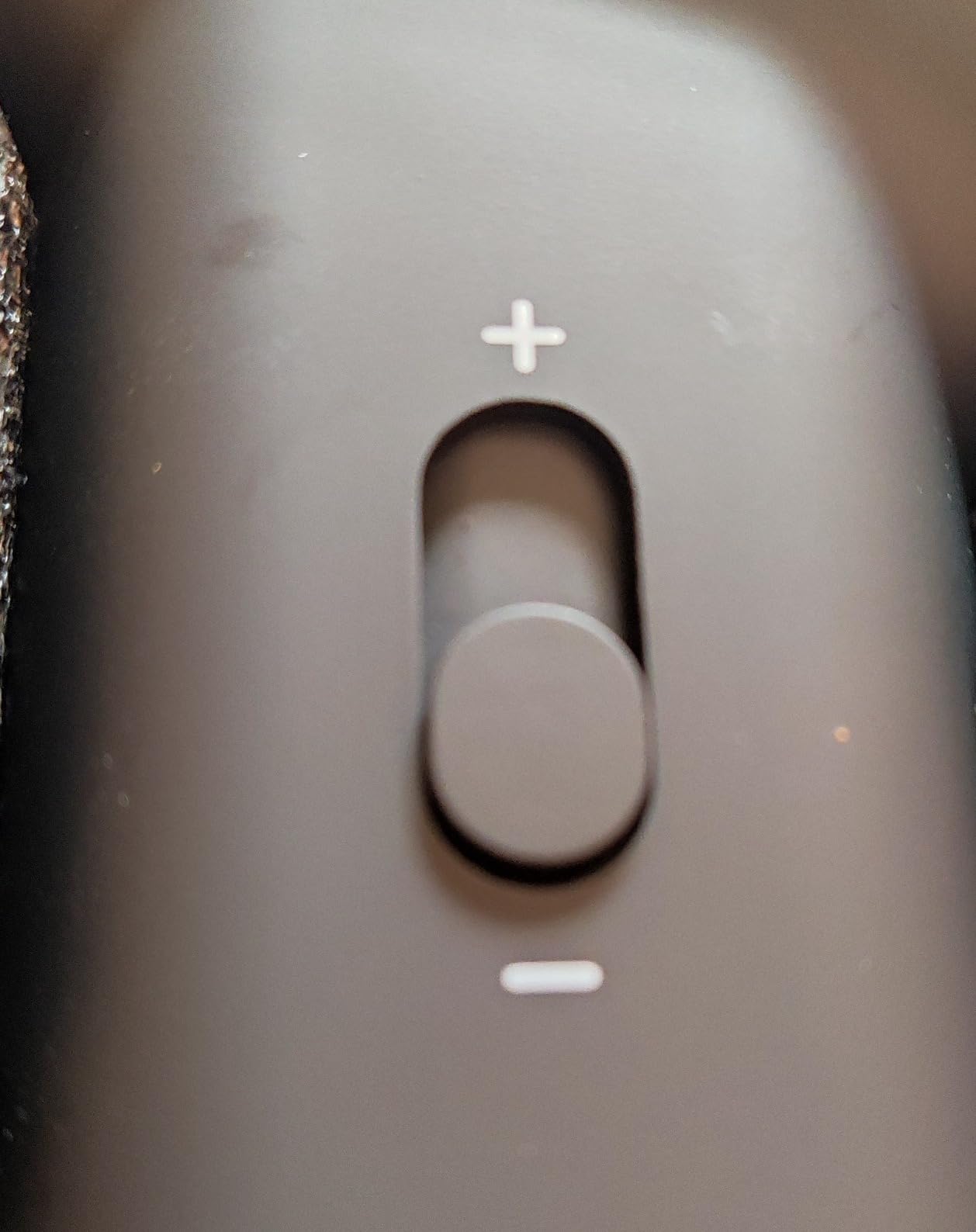 The tactile power button must be pressed to power on (and three times to switch to suction/reverse mode), so it's not easy to accidentally enable the motor. Once powered, a smooth sliding switch controls power fairly precisely. Overall a very well-considered design and very satisfying to interact with.