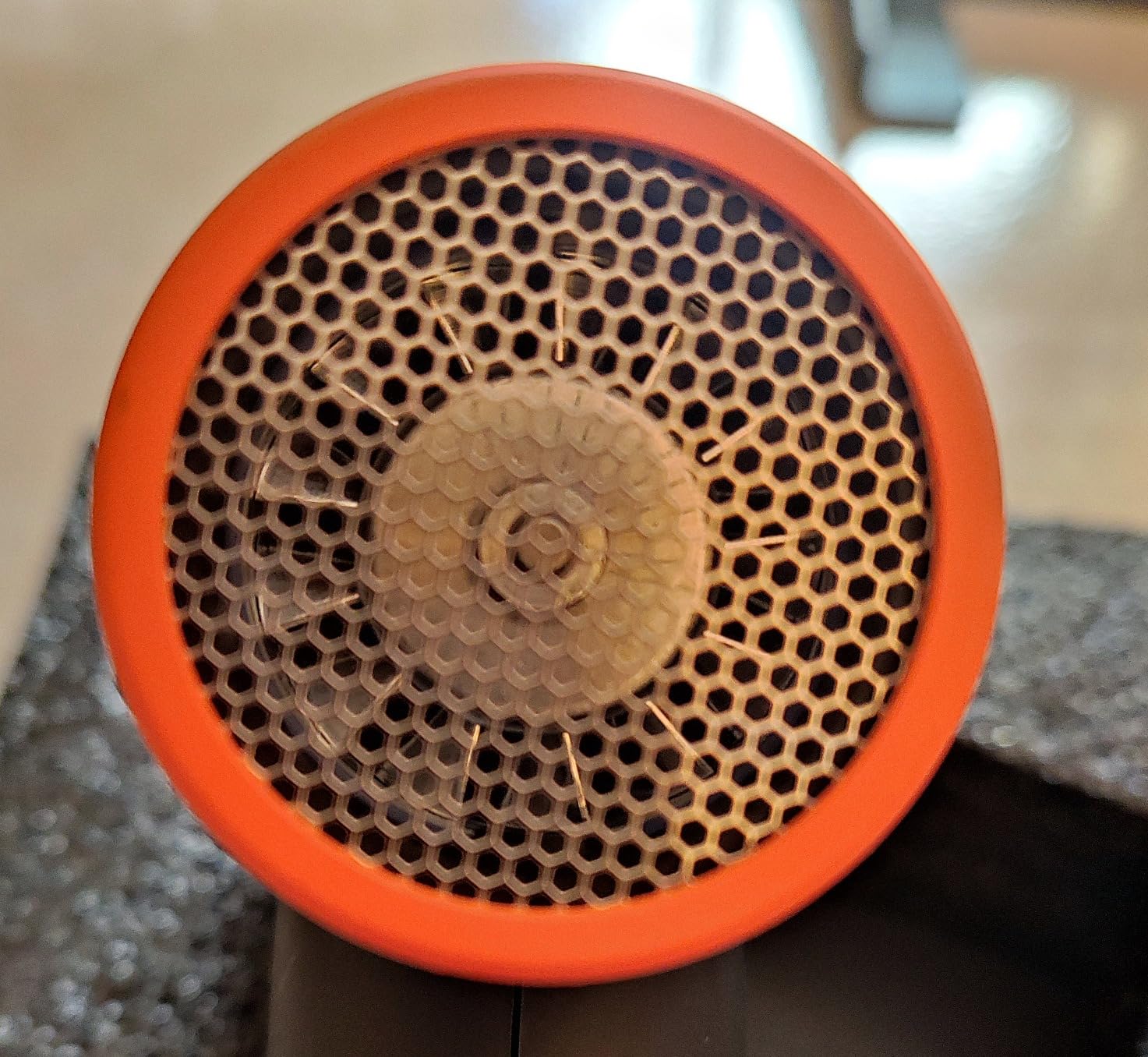 Something I also didn't anticipate was a reasonable feeling of quality across the whole kit. The main unit has a gorgeous visual design, a pleasing finish and colours, minimalistic branding and markings. It has a reassuring weight. There is a metal mesh with a hexagonal pattern over the intake and you can see the metal blades of the turbine motor through it. It doesn't look cheap in any way.