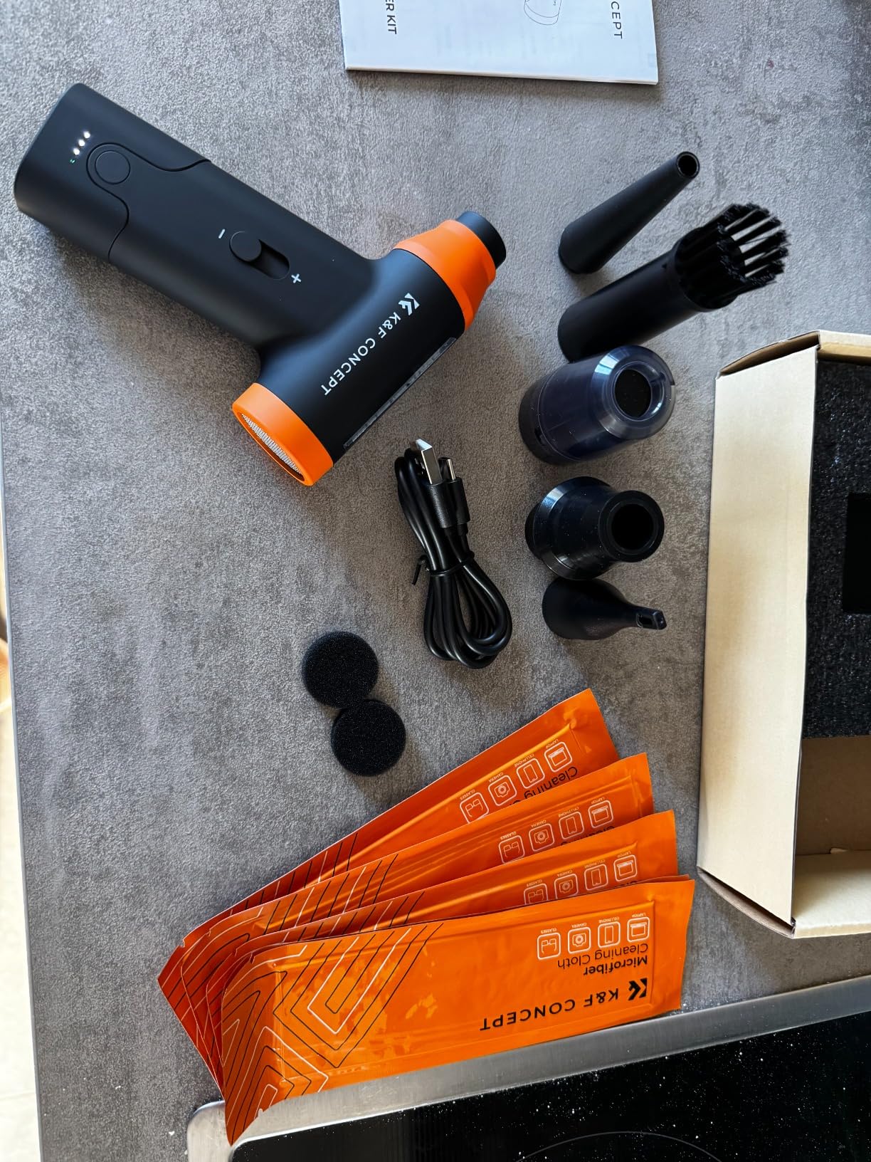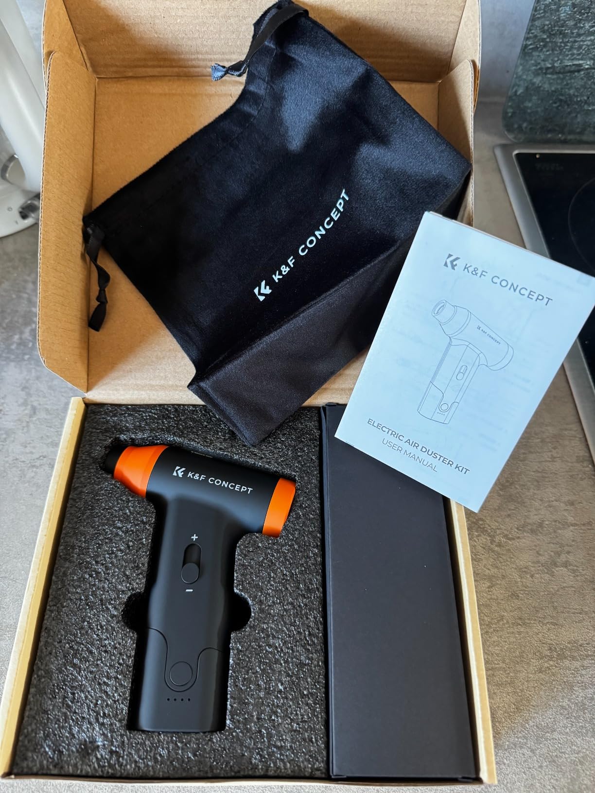 My experience with the K&F Concept electric blower has been extremely positive. This device has significantly simplified my cleaning routines, allowing me to always keep my electronics and car interiors clean. The quality of the materials, the power of the motor, and the ease of use make this blower an excellent purchase for anyone looking for an efficient and versatile cleaning device.