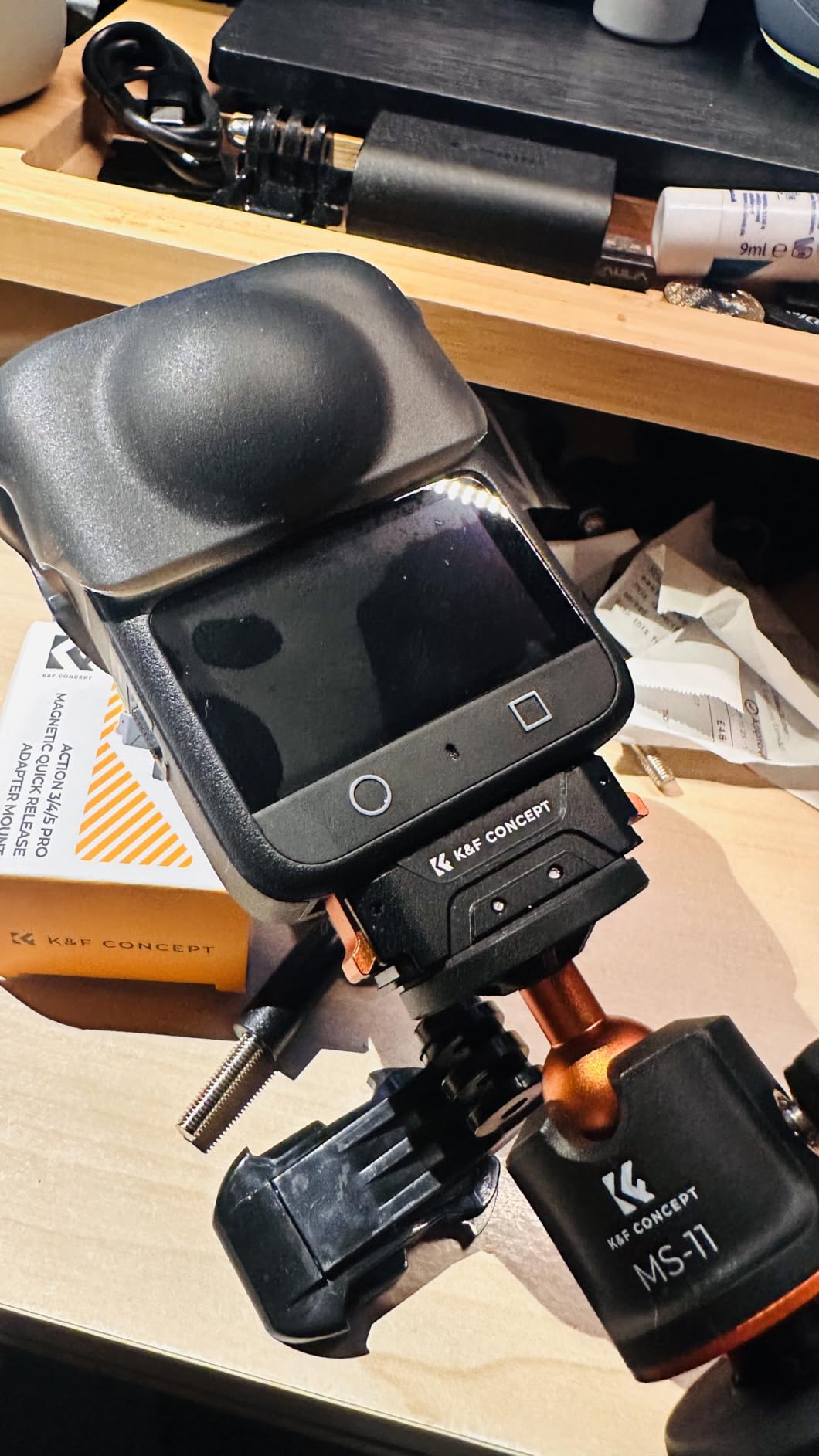 I have a DJI Action 4 but a ton of different tripods and selfie sticks. The base package for the Action 4 only comes with 1 mount, so I definitely needed a spare if I wanted to quickly release the Action 4 between different tools quickly, rather than messing with the thumb screw. I am so glad K&F Concept came out with their own mount, which is marketed for the Action 5, but will fit the 4 and 3 just as well. The construction is as solid as can be, with the pops of their signature orange color. I highly recommend this.