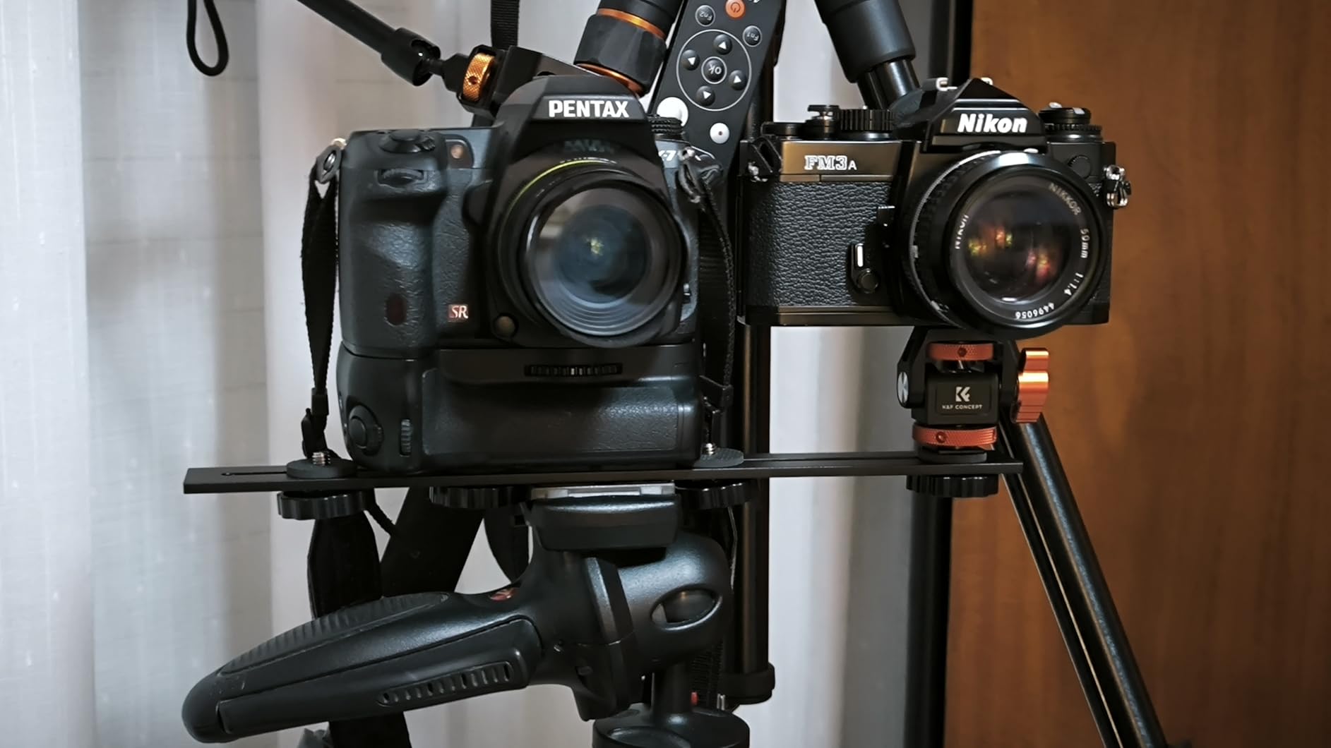 I bought this articulated support from K&F because of a review that alluded to the hardness of the joint to adjust it. This peculiar characteristic is what I was looking for in my application, since softer joints are a danger when they become loose. When operated without load, it is hard to adjust, but with a fixed weight it can be adjusted sparingly and without uncontrollable movements. With this ball joint, I obtain the stiffness I am looking for in my application with a weight of one kg. In addition, the support acts as a height compensator between two cameras with different bodies, equalizing the optics at the same or similar height. With its axes of freedom, you can easily adjust the focus with the fixed camera.