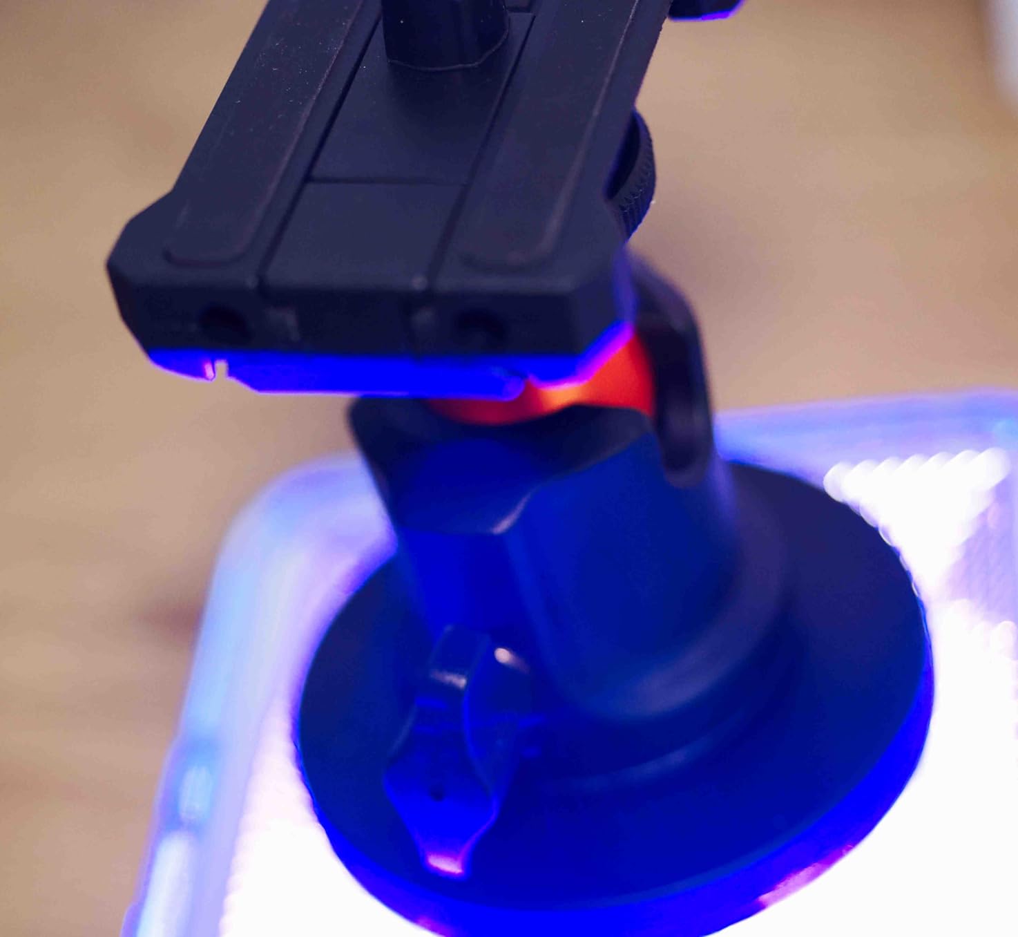 The magnetic base is rubberized and makes a very high-quality impression. The magnets are very strong and provide perfect adhesion. I tested it with a GoPro, but also a Sony DSLM with a 28-75mm Tamron lens and it held everything wonderfully, mind you when at rest and not when driving.
