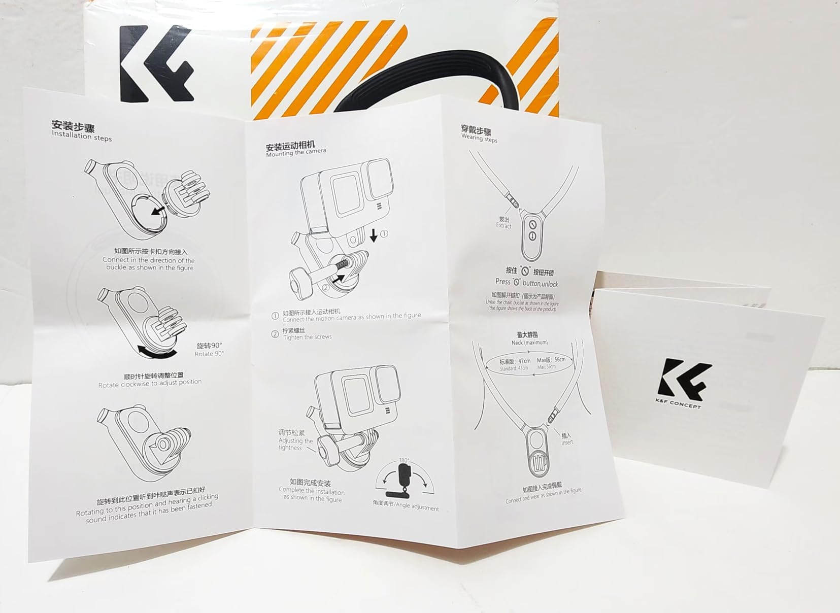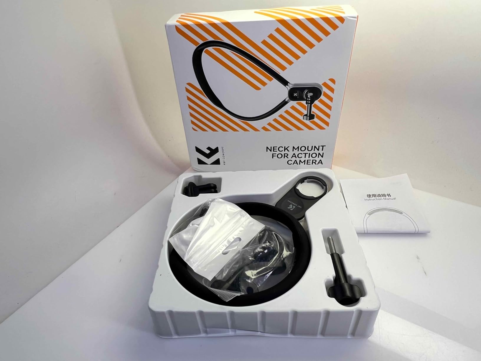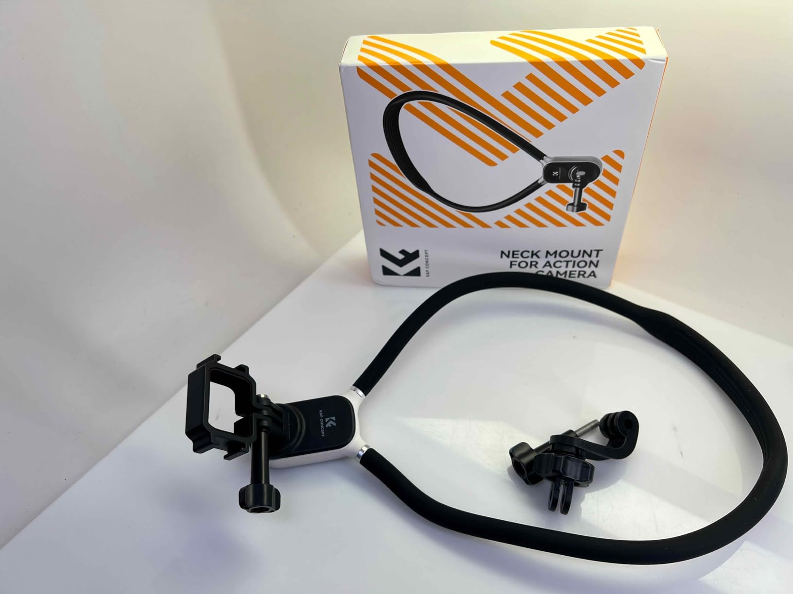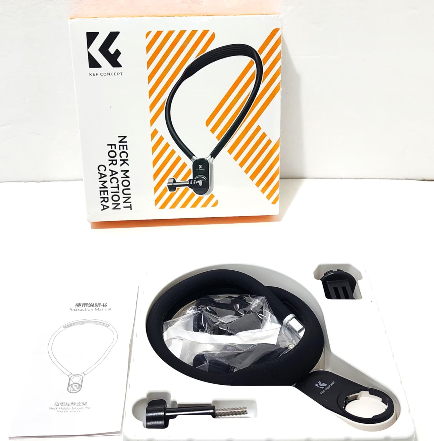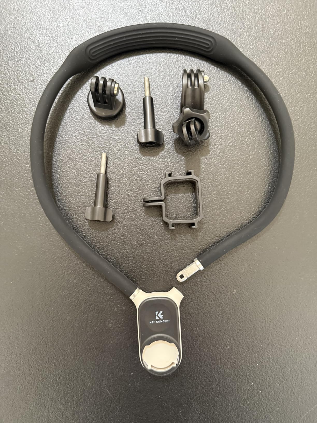 I love this K&F Concept Neck mount for my GoPro!! It is amazing and I probably will not ever use a chest mount again. This neck mount has a smooth and soft silicone bendable cable wire that loops around your neck and locks into place. There are the GoPro and DJI Osmo Action mount that magnetically attach and twist lock into place. K&F provides detail picture instructions for assembly. I am a big fan of K&F Concept camera accessories and products. I am always excited to see what they come up with next. The price is a great value for the quality of the item.