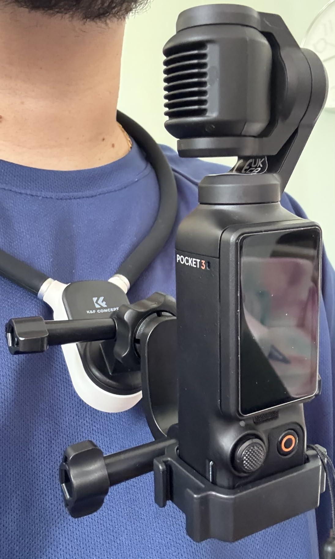 The K&F Concept Magnetic Neck Mount is an excellent way to achieve hands-free recording with your action camera. The package includes the neck-mount itself, two magnetic mounting points (one more suited for a Go-Pro/Action camera and the other one is designed for the Osmo Pocket 3), two screws and a mounting bracket where you can insert a Pocket 3 . The mounting points attach to the collar portion using a magnet and a twist-lock mechanism with a satisfying click. The collar has two buttons behind the magnetic mount, one for disconnecting the collar and one for disconnecting the magnetic mounting point. The collar has a soft texture and a flat portion where it meets with the back of your neck for added comfort. It is heavy and sits conformably. It is great for vlogging, recording unboxing and hands-on videos. The collar holds its shape without being too rigid and its easy to store away. Overall a great product.