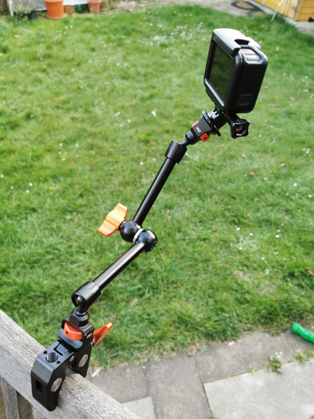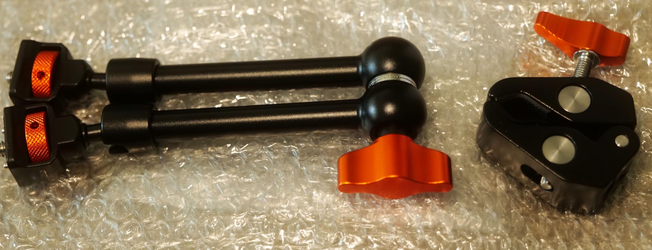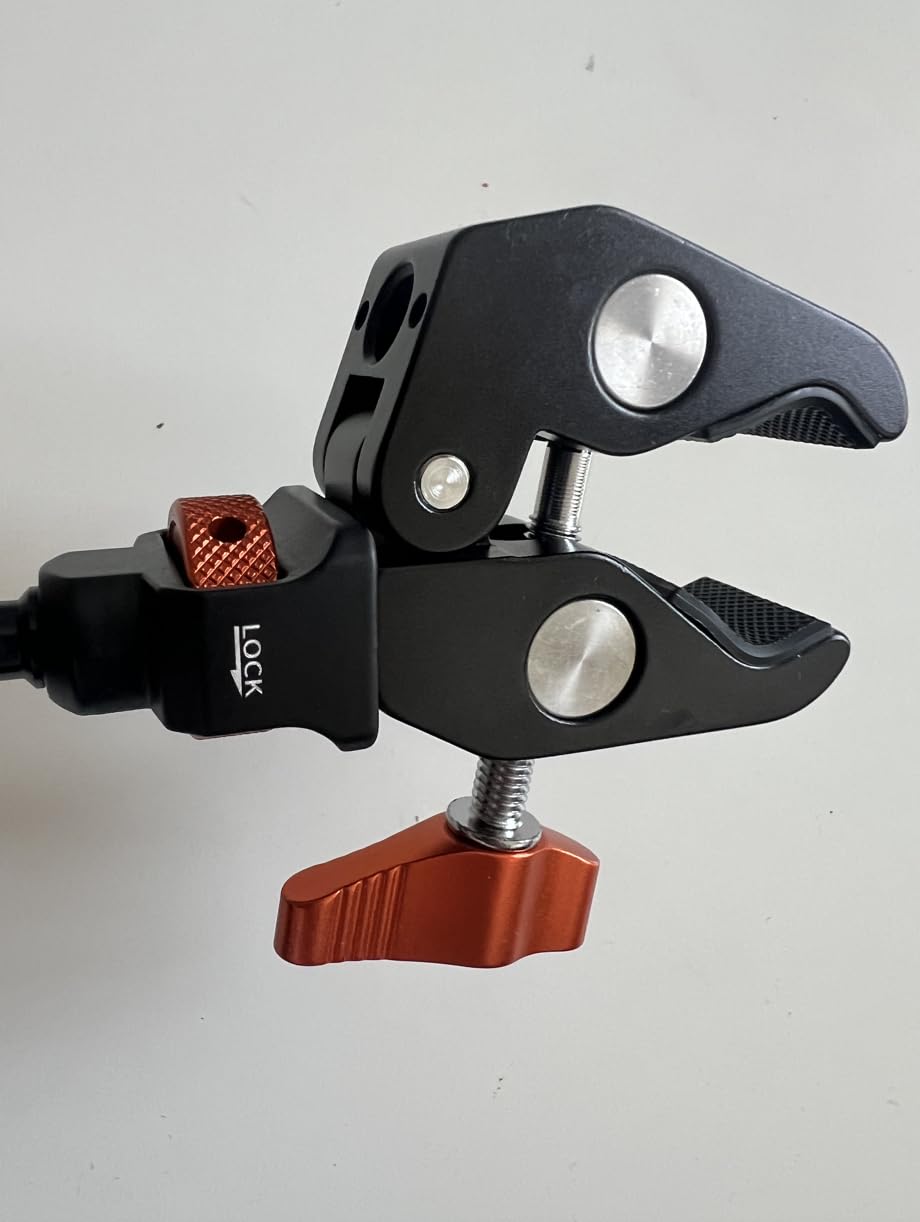 This magic arm clamp from brand K&F CONCEPT is a solid extension to my video rig, in which I have a mirrorless camera setup with a cinema lens and all the bits and pieces for that, but what I was really missing was a way to get my audio a bit more focused from above a subject, and so I installed this arm and a hot shoe boom mic onto the camera cage, rather than on the cameras hot shoe itself.It works just as I had hoped; I noticed that the joints are solid and tightening can be done with a very easy twist. The joints have very little wiggle and so the audio accessories stay in place, which is exactly what I needed.Overall, the 11 inch arm has a fantastic clamp included if you prefer to attach it that way, though it has both 1/4 and 3/8 inch screw mounts, and enough length to serve my purpose. I am happy with it overall. Comes in orange and black, as is the K&F CONCEPT colour tradition. Great brand, always great products. 5 stars.