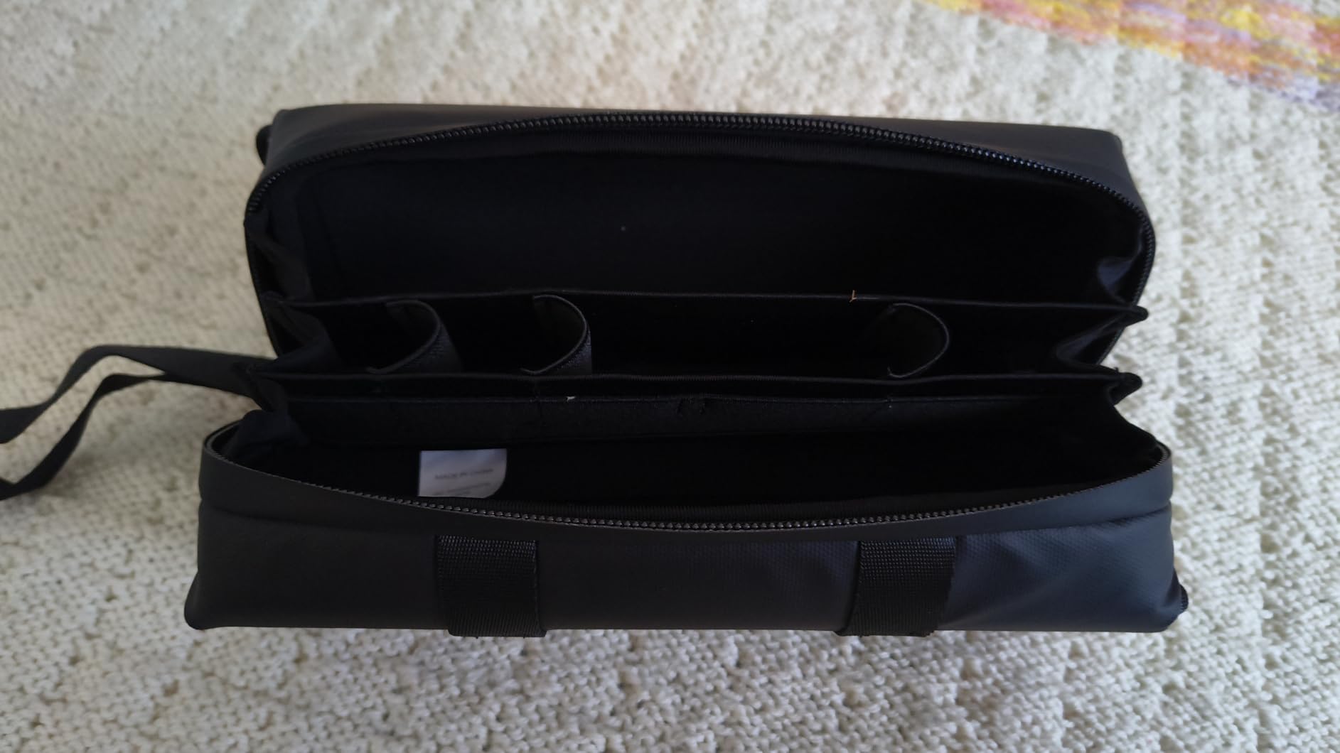 I ordered this as an all-purpose electronic storage bag for on-the-go use. It's nice to have everything you need in one spot.The inside has two large main storage compartments as well as four compartments in the middle of various sizes. The interior is plush and soft, providing protection for the contents. The bag measures 9×3.5" long and 3.5" wide and holds all you're charging accessories, plugs, cables, and power banks with room to spare. It keeps everything organized, easy to see, and ready to grab and go.The outside is made of 900D fabric that feels tough. The bag is waterproof, with smoothly working zippers that are water-resistant, so you can feel safe carrying your electronics around. They've provided a convenient wrist strap for carrying, and there are also small loops to attach your own cross-body strap. Additionally, there are straps on the bottom to attach to backpacks or any belt.Overall, it's of very nice quality and makes a great bag for organizing and carrying all your electronic gadgets.