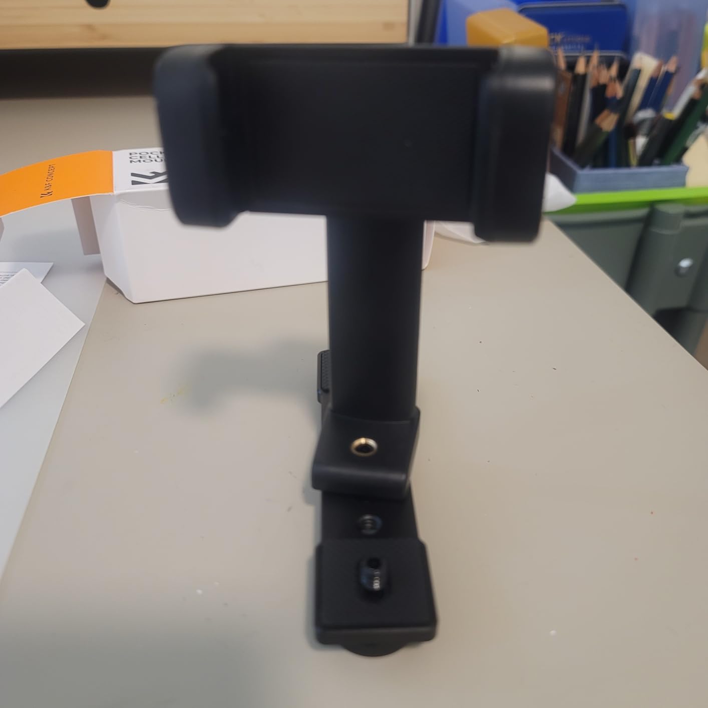 It's a great idea to have the settings and the image on the phone screen and the osmosis right next to it. Tested with a Samsung Galaxy s23, I appreciate that I can easily access the phone screen to change the settings. On the other hand my phone is small so that's fine, with a larger phone, it could quickly be unbalanced or annoying because there is little space between the phone mount and the osmo when you are in landscape mode. Also be careful that having the telephone+the osmo+the support makes everything heavier considerably.