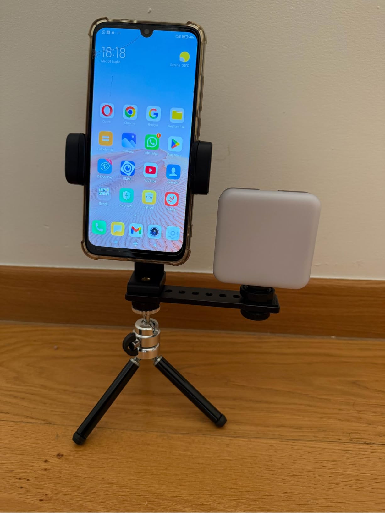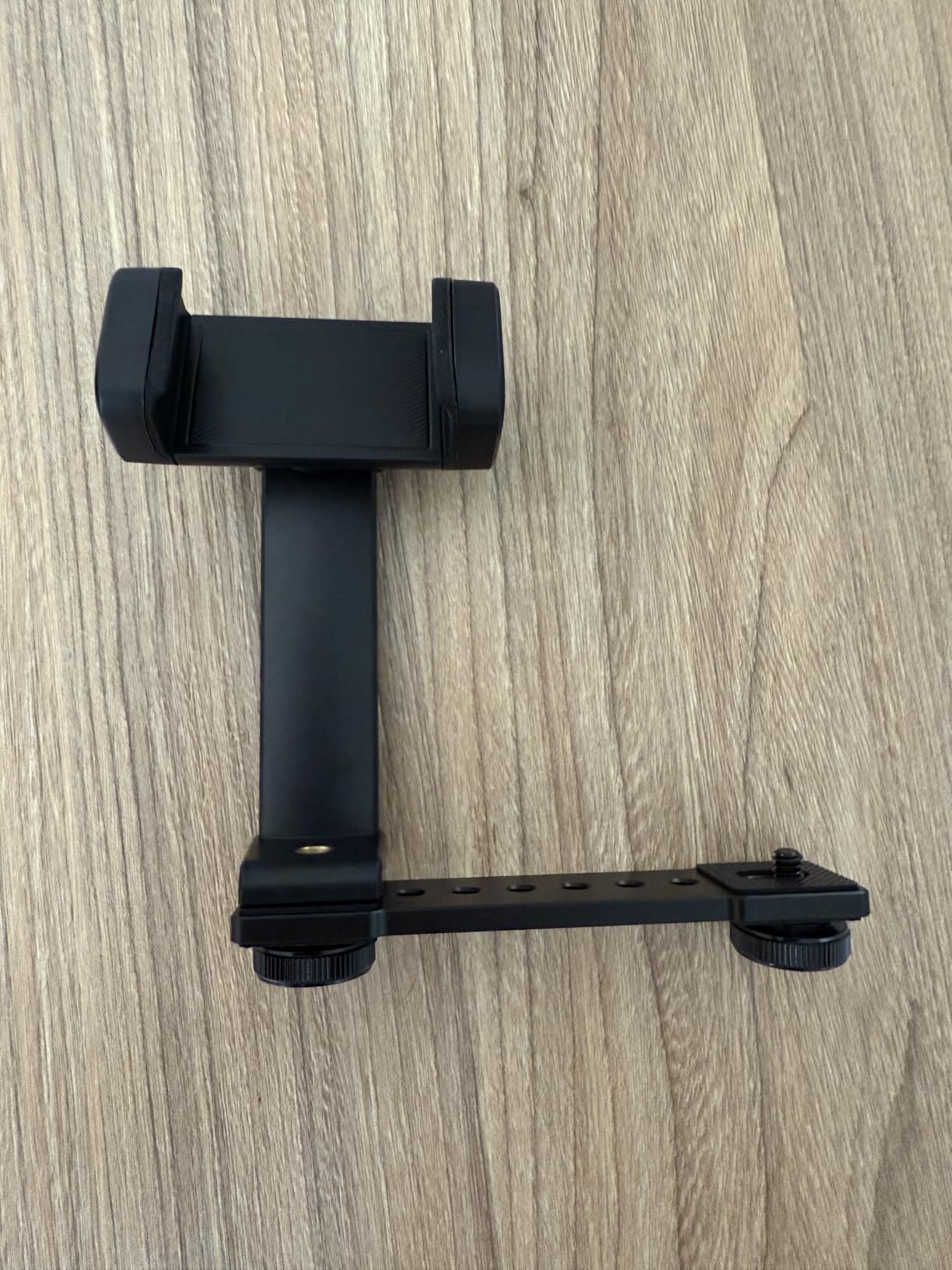 Questa staffa rappresenta un utile completamento per il vostro DJI Osmo Pocket 3, in quanto permette di avere affiancato uno smartphone e quindi trasmettere l’immagine visualizzata dalla piccola fotocamera su un display più grande.In realtà, questa struttura a supporto ha un enorme versatilità e può essere impiegata per tantissime configurazioni differenti audio/video: solo per citare alcune soluzioni ad esempio, si può collegare una action CAM ed uno smartphone oppure uno smartphone e una luce di riempimento e così via.La struttura è costituita da un supporto per smartphone in plastica con aste in metallo che si allargano per poter accogliere smartphone anche di grosse dimensioni ed una staffa in alluminio con attacchi da 3/4 di pollice su entrambe le estremità e con fori intervallati con filettature sempre da 3/4 .Il serraggio dei due supporti all’estremità avviene con vite a sua volta forata per poter accogliere un ulteriore accessorio con testa a vite da 3/4 (ad esempio nella foto o agganciato un piccolo treppiede).È una struttura semplice, ma può davvero essere impiegata con una molteplicità di accessori e su una molteplicità di dispositivi audiovideo.