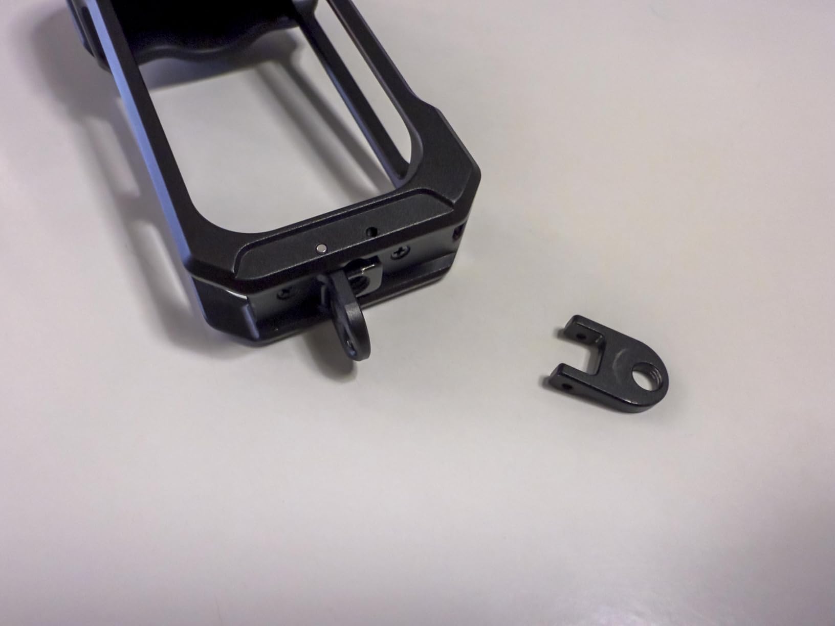 This cage could also have been built by Rheinmetall. It offers various options for a quarter inch thread. Fits very well what I don't like so much is the protection of the lenses which is very wobbly. Otherwise, everything is very tight with a lock screw for the opening mechanism so that nothing is accidentally opened. I find the option of simply opening a GoPro mount particularly intelligent, which is also made of metal and should take some effort. Perfectly equipped for mountain biking and motorcycling.