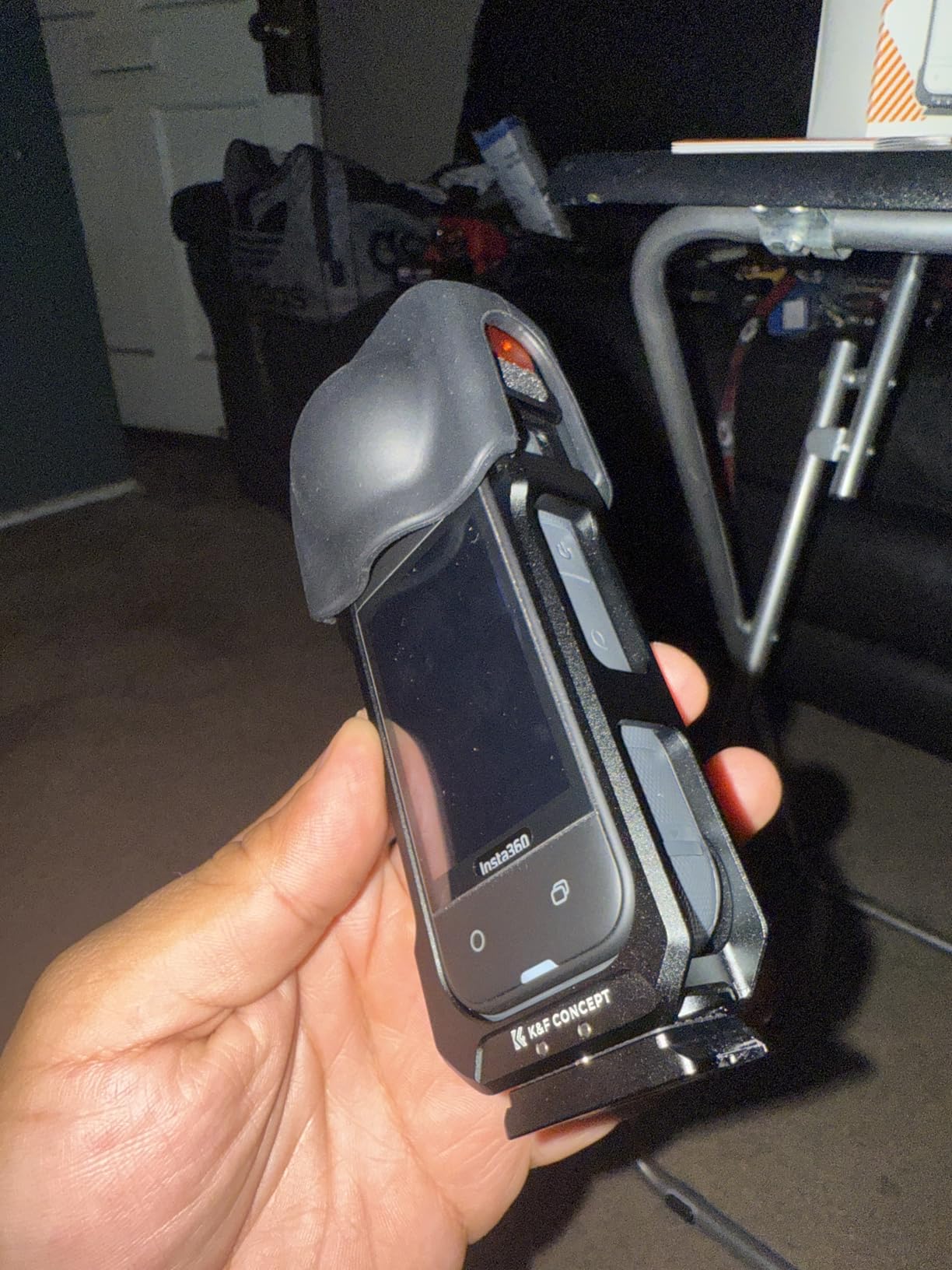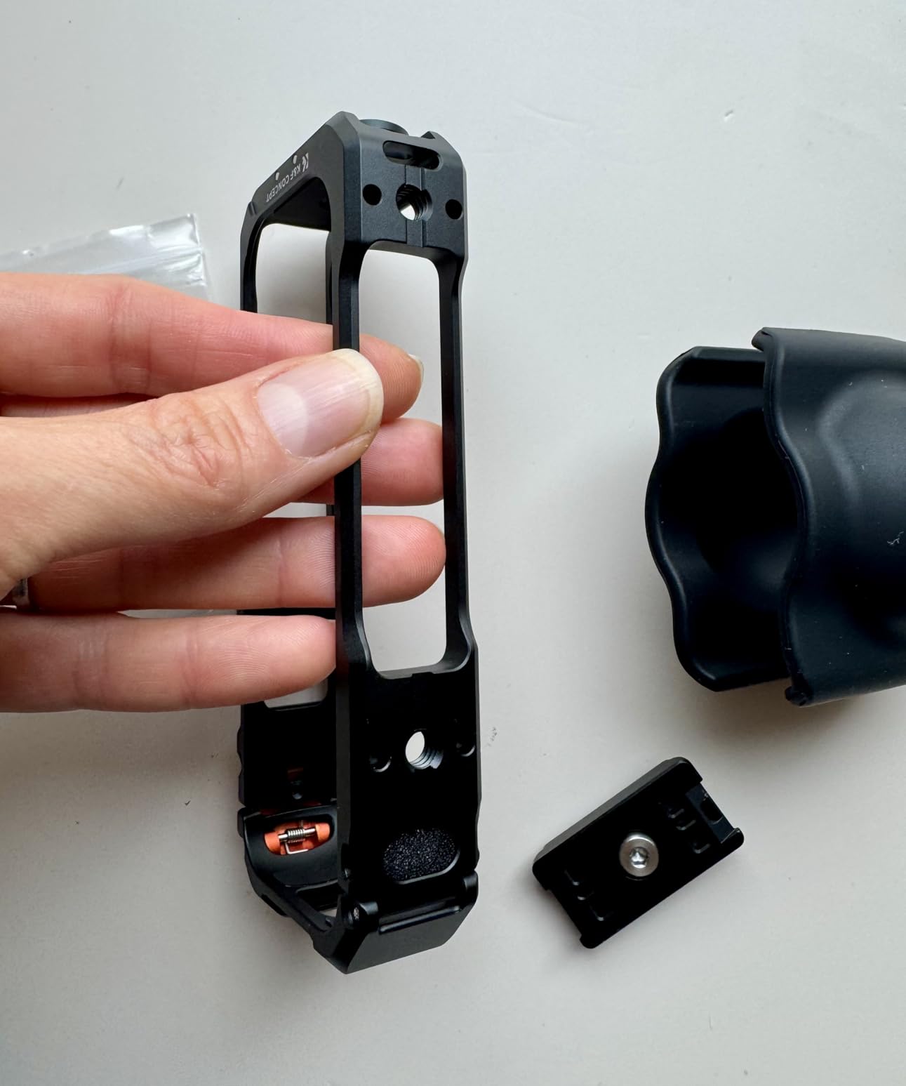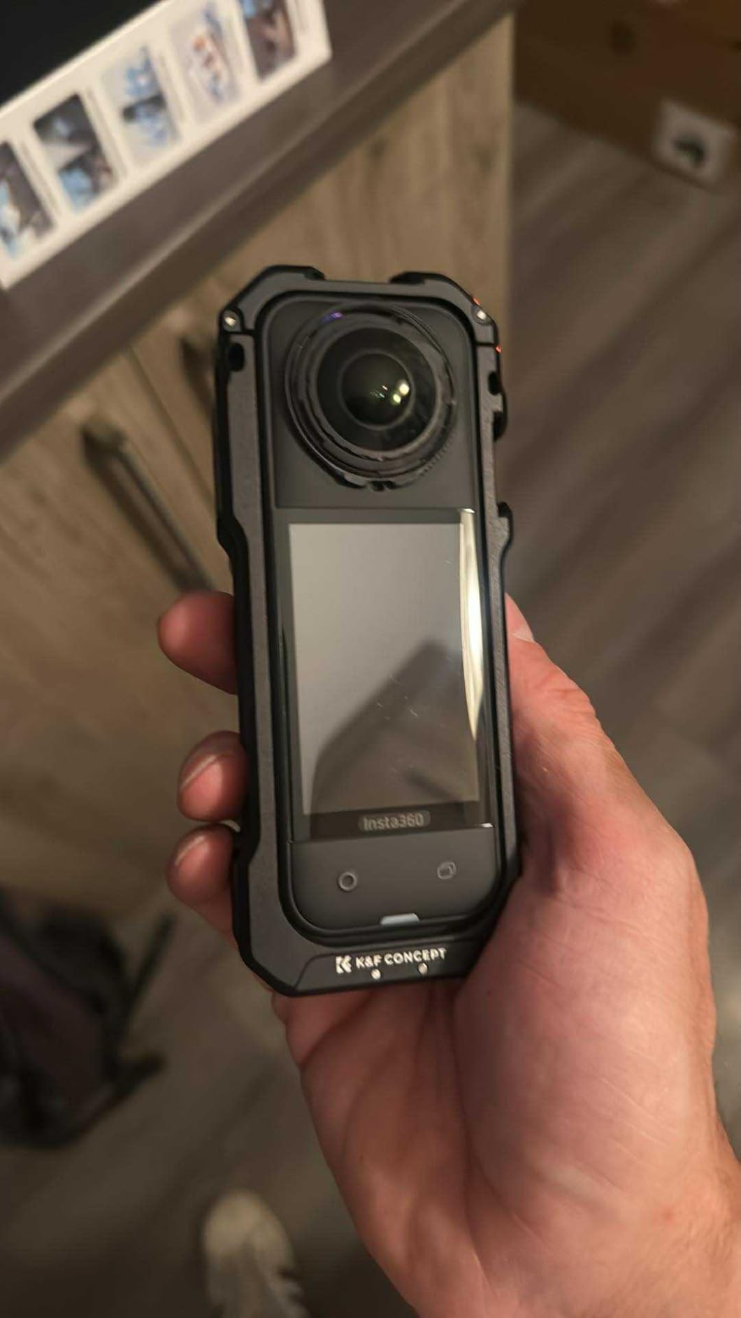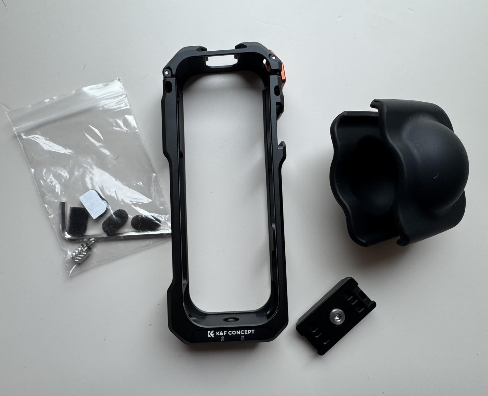 I am very satisfied with the K&F Concept camera cage for the Insta360 X5. The housing is made of high-quality aluminum alloy, looks very sturdy and reliably protects the camera from bumps and scratches. The silicone lens cover can be quickly put on when the camera is not in use. The two cold shoe holders make it easy to attach accessories such as a microphone or light, which significantly expands the range of applications. The integrated 1/4" screw holes are also well thought-out and offer flexibility during assembly. The workmanship is clean, nothing wobbles or rattles. Overall, a durable accessory that not only provides protection but also significantly improves the functionality of my camera.