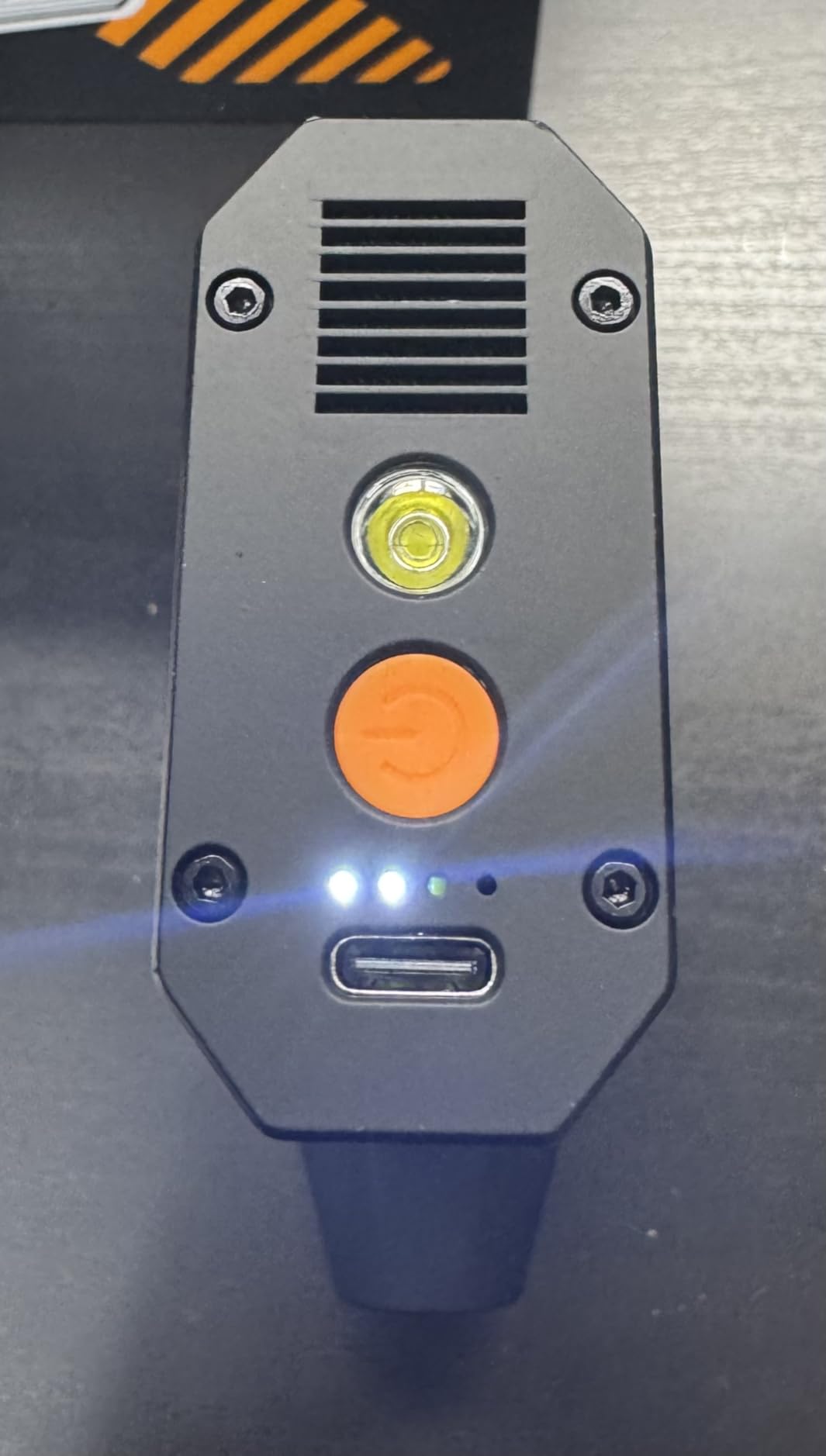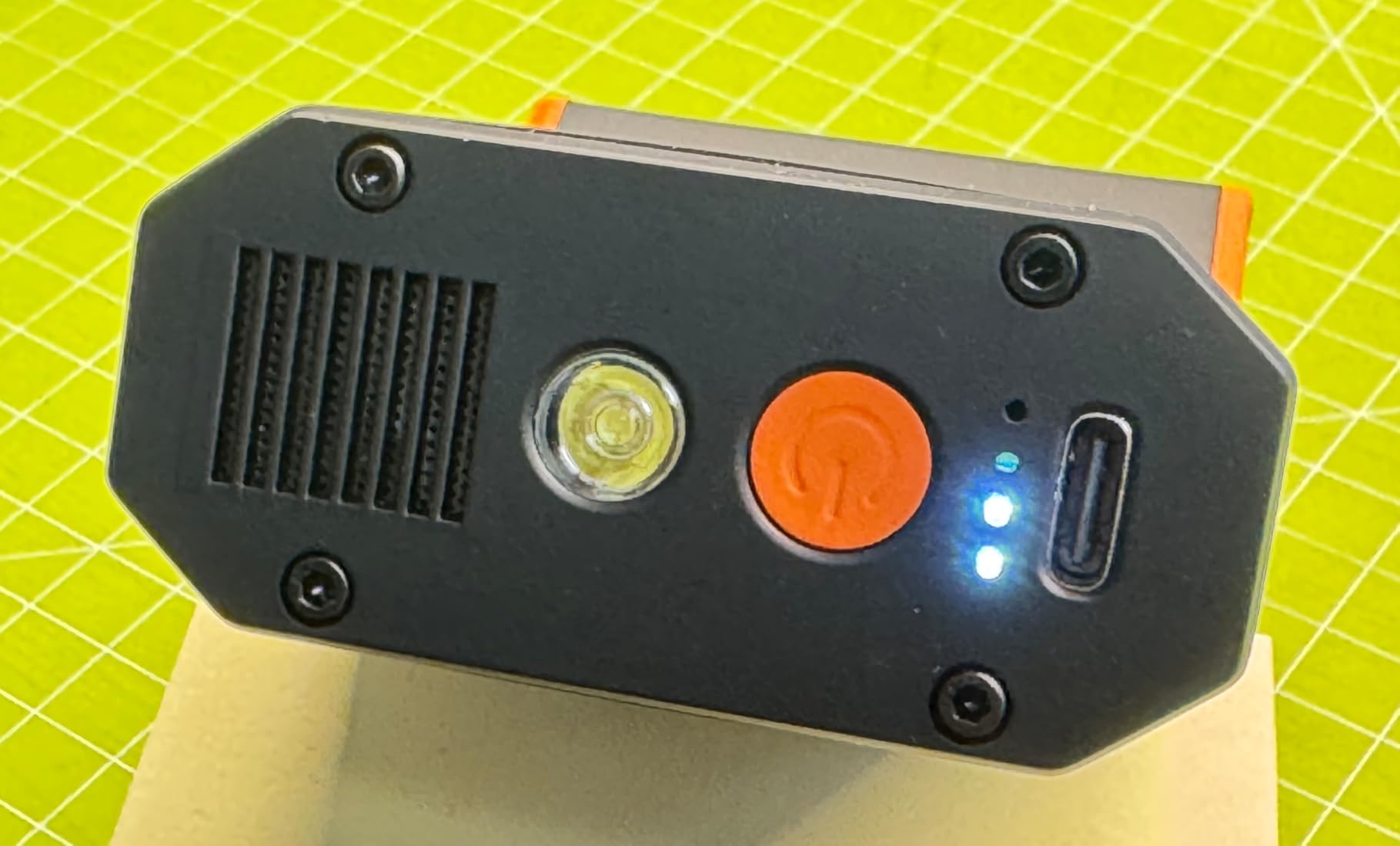 A figure that speaks for itself: real, tangible, measurable power. It's not just a gadget, it's a tool that competes with professional solutions, in an ultra-compact format. A result that places it well beyond classic spray air cans that can't even push 50 grams. It's lightweight, compact, rechargeable via USB-C, and has 3 speeds with colored LEDs that change based on intensity. The air flow direction icons and battery status LEDs are real gems.