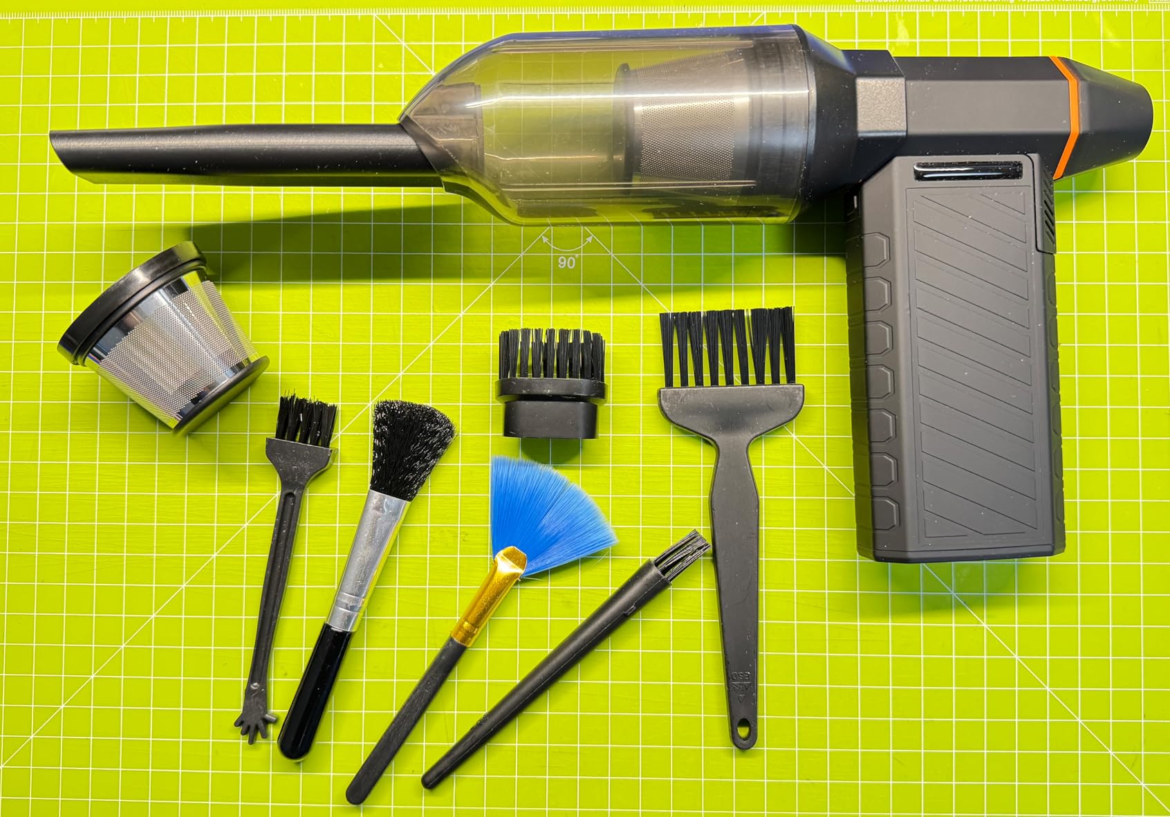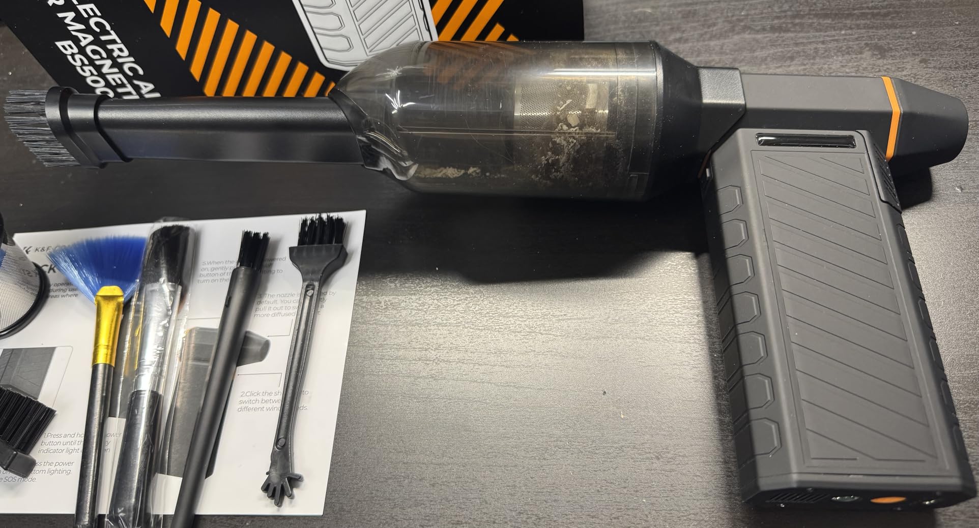 Since receiving it, I've been impressed by how versatile this blower-vacuum is. The power is truly remarkable: its brushless motor reaches up to 300,000 RPM, generating an airflow that, according to the manufacturer, can reach up to 120-150 m/s, making it effortless for cleaning everything from keyboards to car air vents.