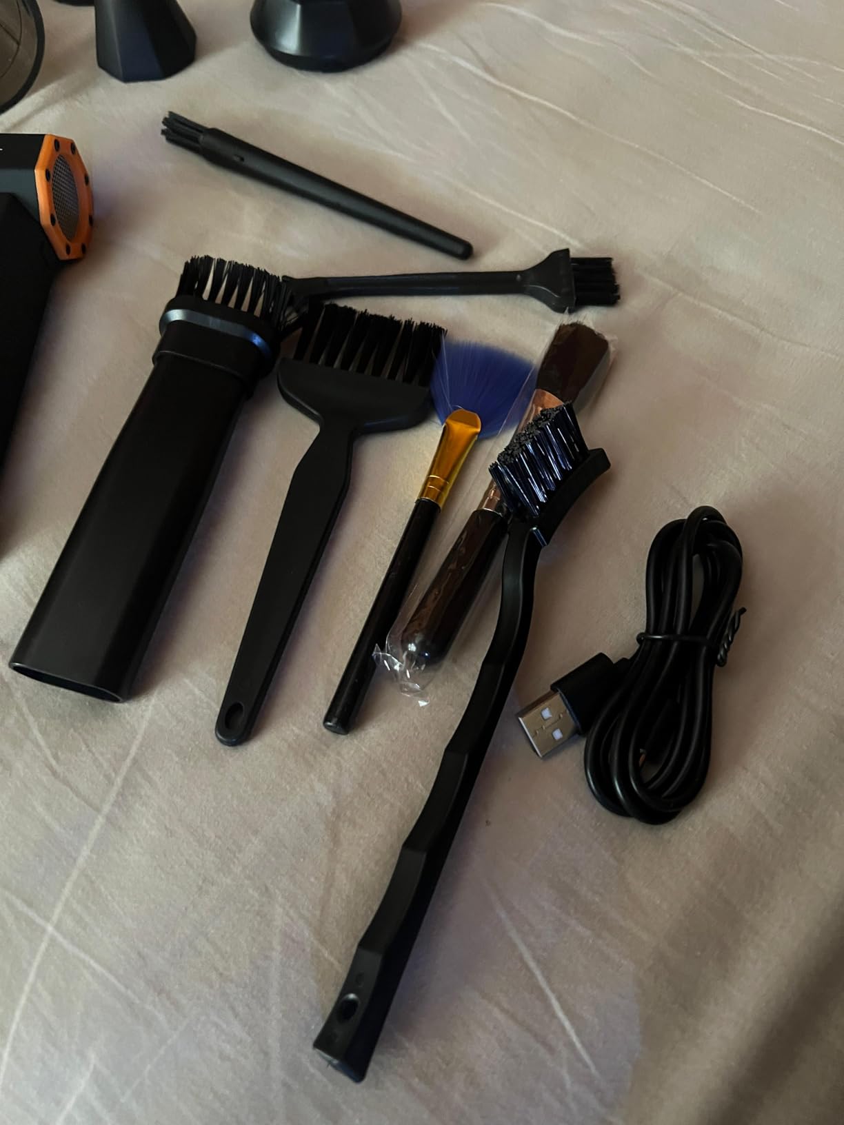 I also wish the package included a thinner attachment in addition to the standard magnetic attachment for blower mode. This attachment would help focus the blower on a specific point, which is quite useful for cleaning small spaces like cable ports or electrical outlets.