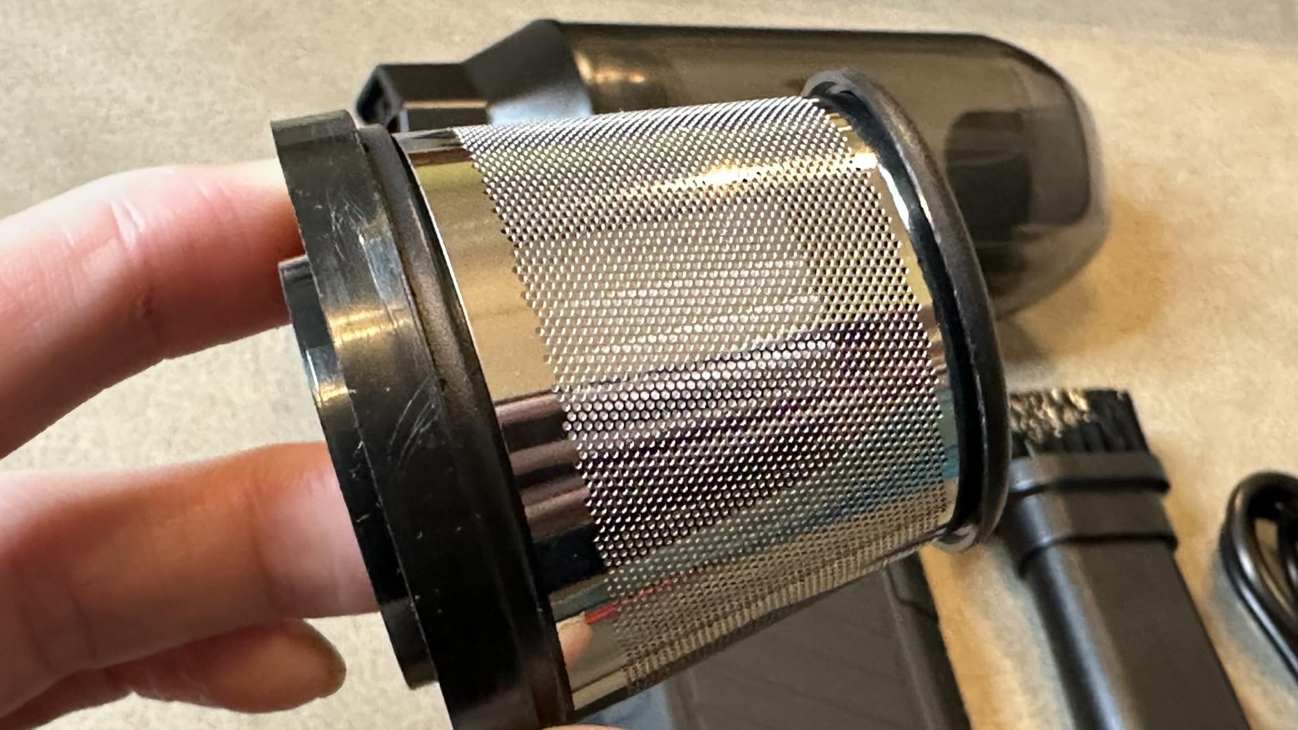 One thing to note is that it is quite loud, especially at higher settings. My partner, who has very sensitive hearing, wasn’t thrilled when I used it while he was in the room. That said, it might have been karma for leaving dust all over the surface from his DIY!