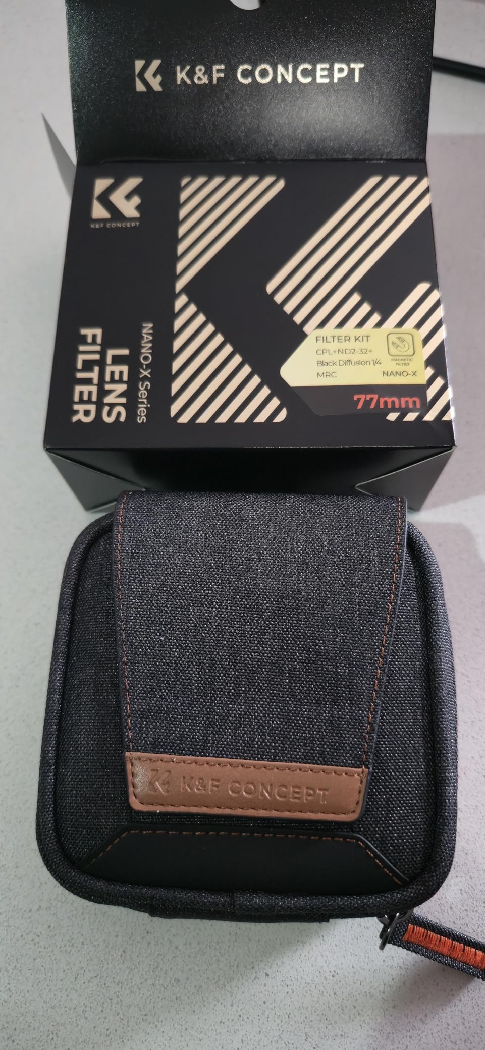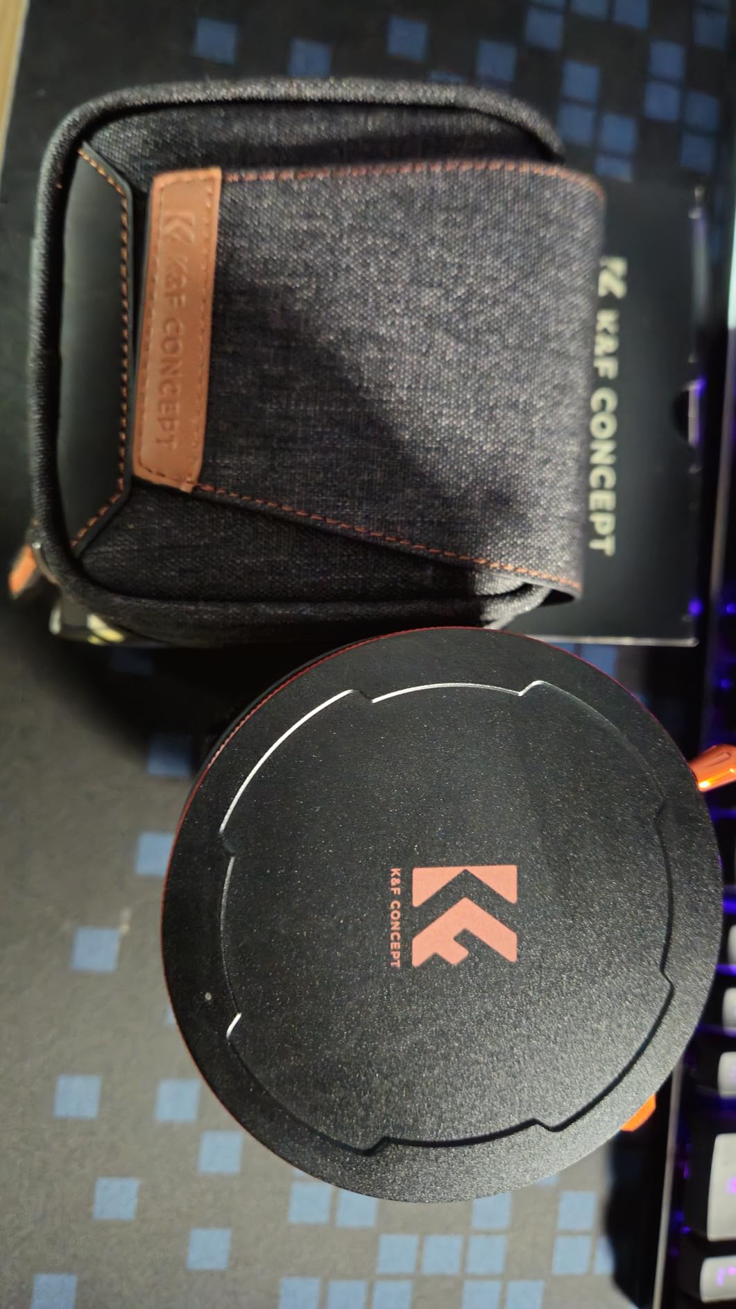 The bag isn't just a freebie; it's genuinely useful. It's divided (K&F Orange), protects the filters well, and can be attached to a belt with a loop.