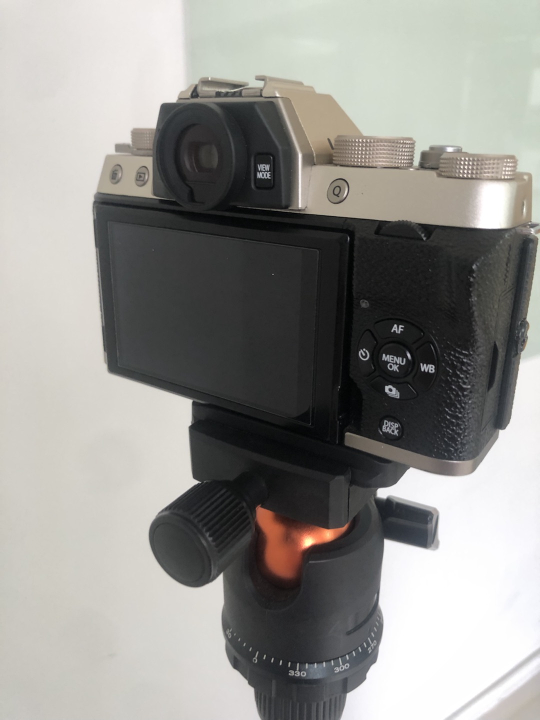 This tripod includes a KF-28 swivel head and holds my Sony Mirrorless AIII camera with an attached lengthy G telephoto lens. The 1/4 inch screw in the quick release Arca swiss plate to accommodate all my previous mounting adapters.
