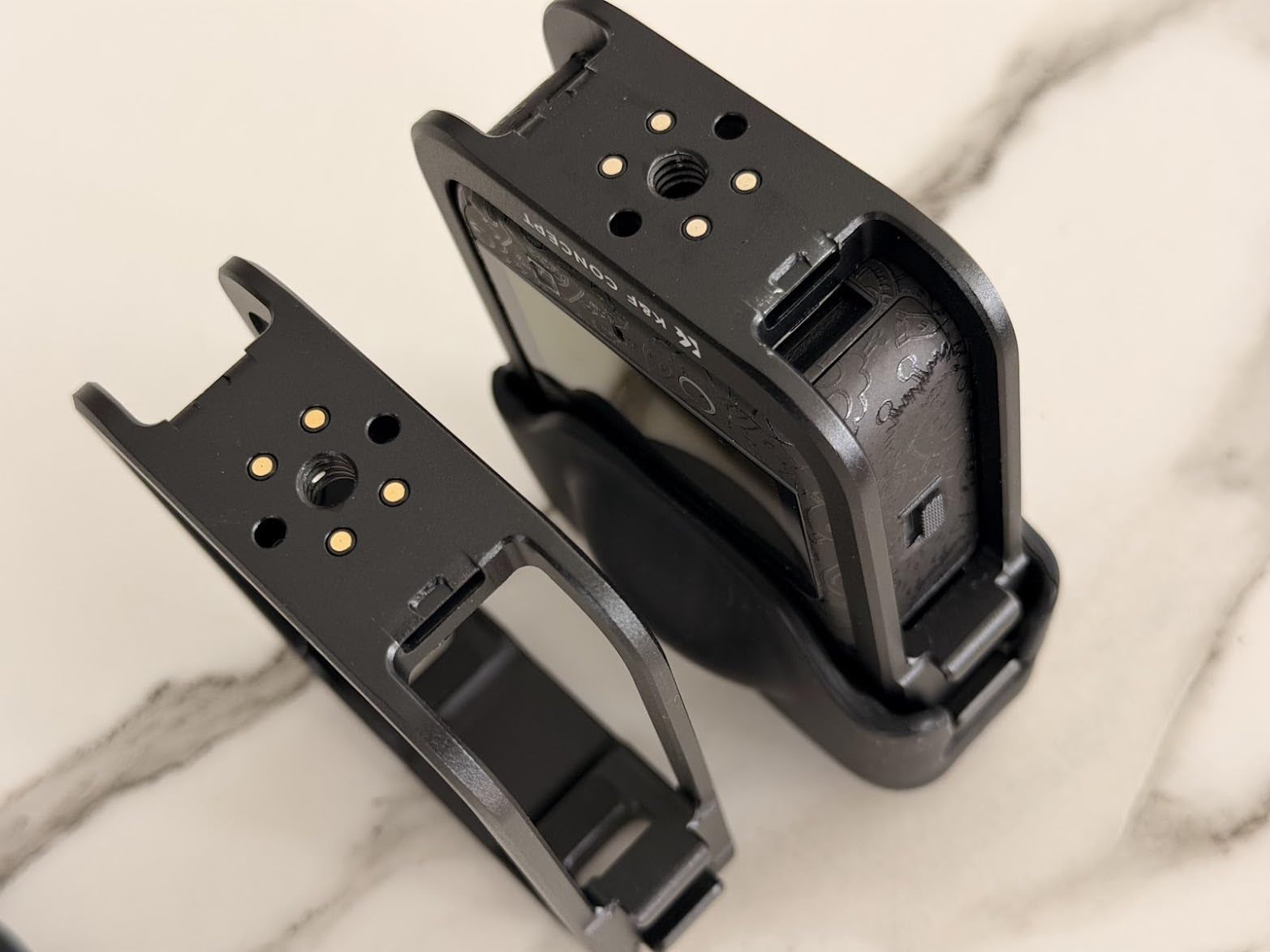 This updated K&F Concept metal camera cage for the DJI Osmo 360 represents a meaningful revision over the original version, with the primary improvement being adjusted tolerances on the bottom magnetic quick-release interface. On the V1 cage, the quick-release adapter had to be forced into place and often failed to click securely, which posed a real risk of accidental detachment and potential damage to the Osmo 360 if not constantly checked. In this V2 version, the quick-release now clicks in smoothly and effortlessly, making mounting far more confidence-inspiring and practical for frequent accessory changes. The tradeoff is a small amount of added wobble at the mount compared to the extremely tight fit of the previous version, though it remains secure in normal use. Overall, this is a safer and more user-friendly revision that prioritizes reliable engagement over overly aggressive tolerances, while still offering solid protection and excellent expansion options.
