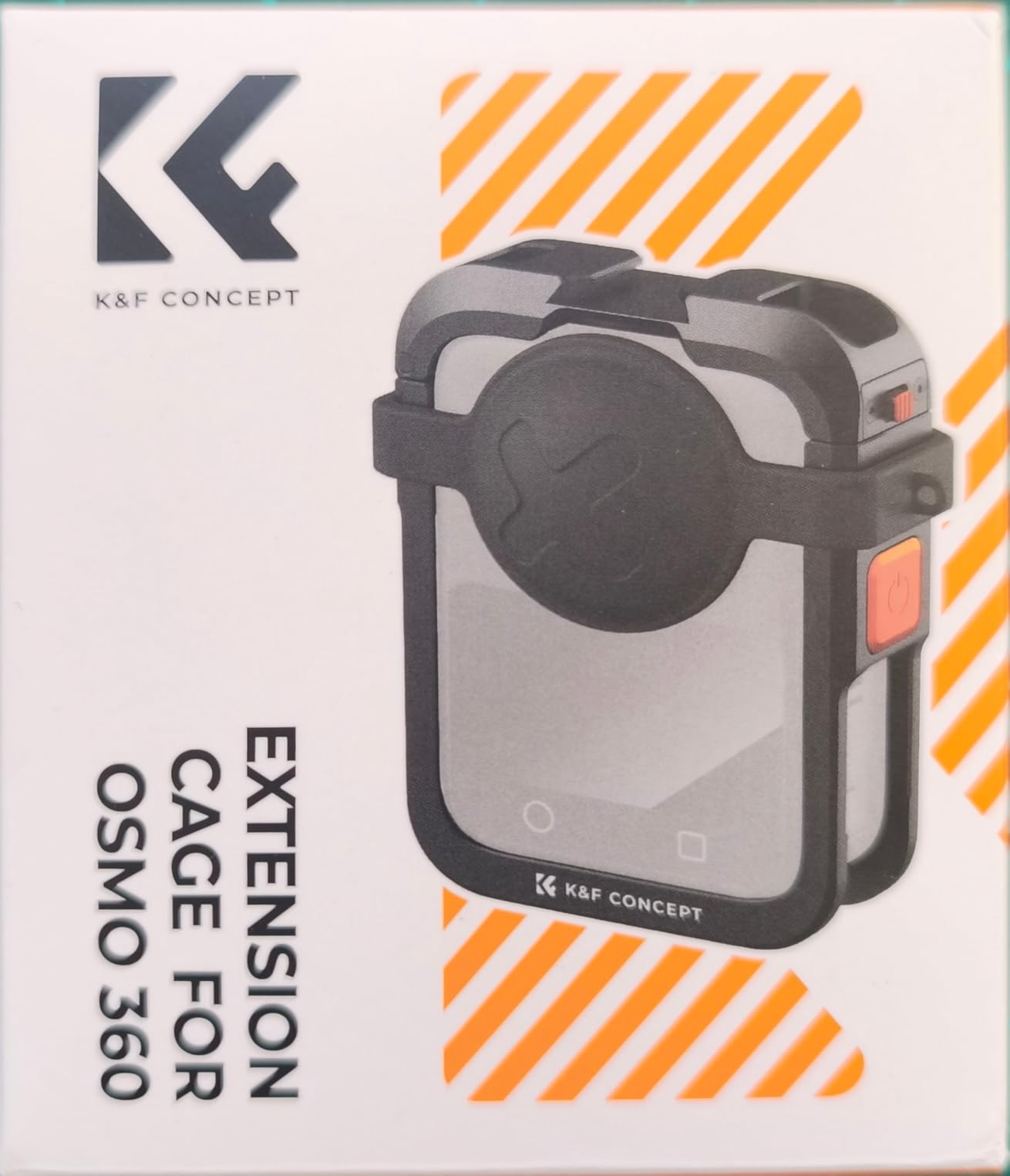 The cage for the DJI Osmo 360 comes in a cardboard box and is designed in the typical K&F colors.