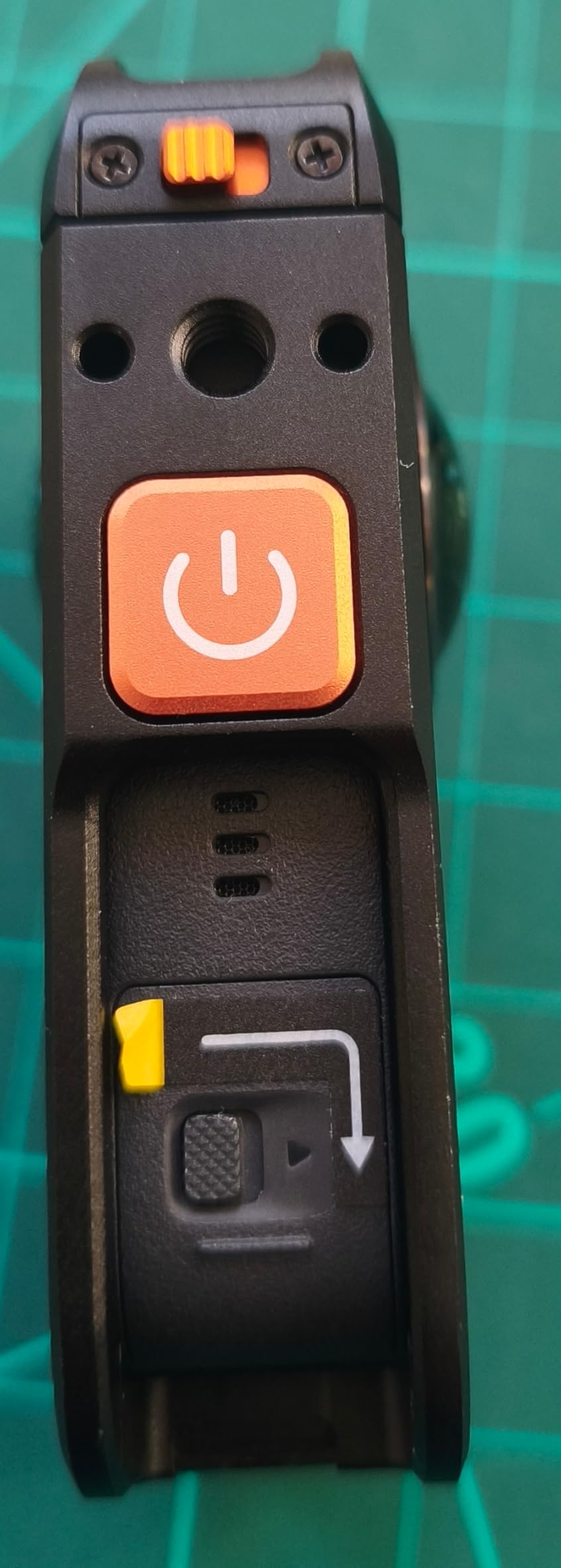 It is practical that both the battery compartment and the lid for the USB-C port remain accessible. The power button is extended by the cage over a red button and is therefore even easier to operate. In addition, you get cold shoes at the top and on the left side for mounting accessories such as microphones or lamps.