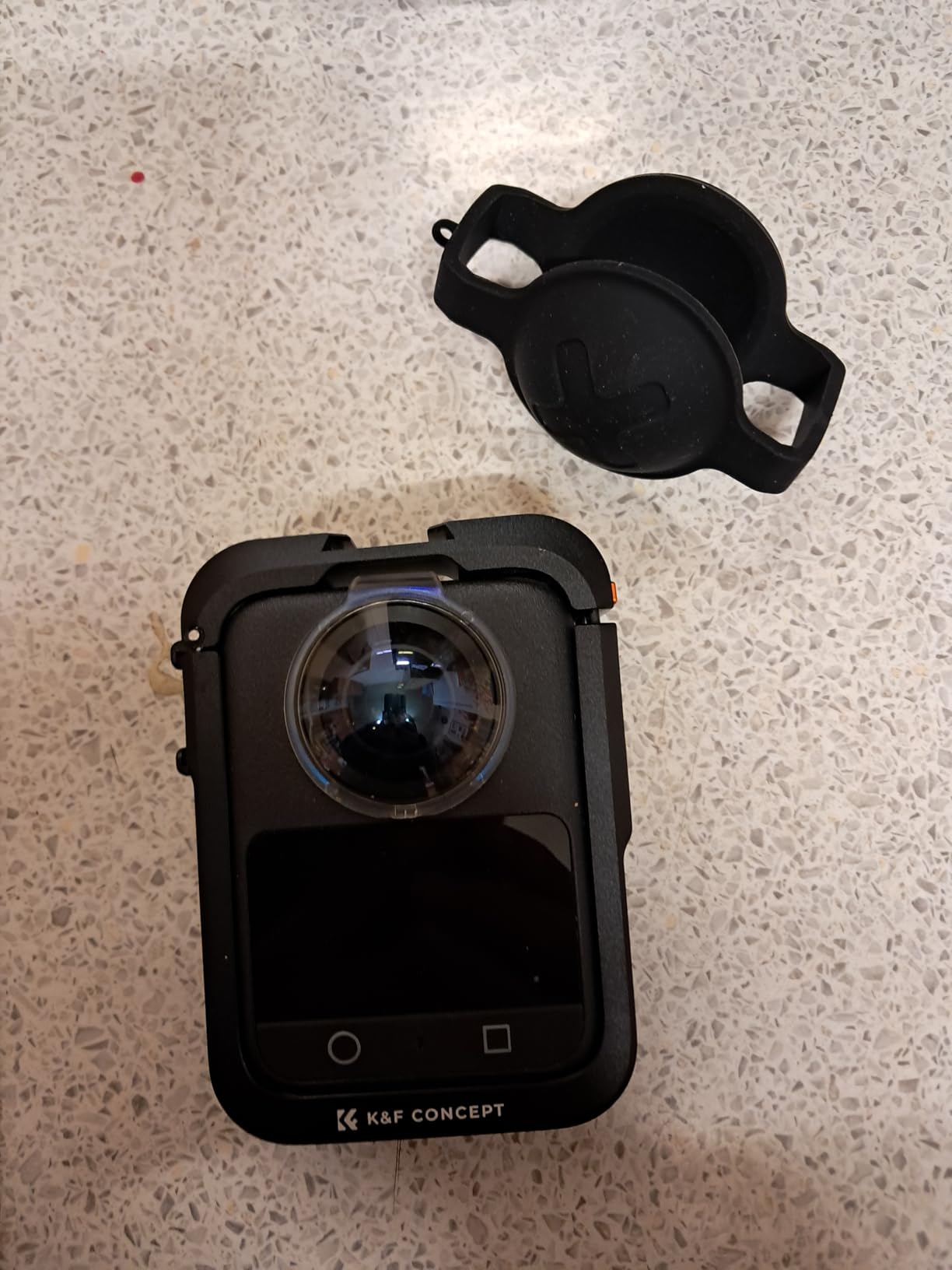 As someone who has has several K&F Concept products, my personal experience is it's usually a brand that I can trust.Primarily because of the high build quality their products have and in that respect this cage is no different. Especially how this cage is incredibly well made from a super tough black coated aluminium alloy.Something that certainly does provide a good level of protection for my Osmo 360. Yet at the same time it doesn't restrict with the cameras core feature, taking 360 degree pictures and video. Nor does the cage block off any port doors.I also like how the cage has two cold-shoe mounts, one on top and one on the left hand side, so I can easily mount lights or a microphone. Plus there's a magnet at the base, which both holds the Osmo in place super securely, but also works with any compatible external magnetic mount. A base that's also got a 1/4in bush with securing pins, so I can use this cage with any tripod or selfie stick that uses 1/4in bolts.But it does have a couple of annoying issues, such as once installed it makes opening the port doors rather awkward.It also adds a fair bit of weight to a camera that's held like a phone not a DSLR and that's a noticeable weight especially on a selfie stick. Enough extra weight, that if you forget about it, can cause the camera to tip and drop forward when on a selfie stick.Fortunately when that happens the cage does go a good job at protecting the edges of my expensive toy. However, as is standard with all Osmo cages, this cage doesn't protect the twin bulbous lenses during filming. But you do get some basic lens protection for when the camera isn't be used, such as when transporting it.Though it's not the same type of rubber cap that comes with the Osmo and other cages. The one with this cage doesn't cover the whole top, instead it's a rubber strap with two half domes that cover the two lenses. It will even cover lens which have lens transparent lens protectors. But while it's mildly stretchy, it does require some force to fit it, so you do need to be careful not to break the strap.Though you will need to source your own lens protectors, that's because as is standard for most cages, this doesn't include any lens protectors. Something that's highly recommended because the Osmo 360 lenses are not user replaceable. Instead, if they are damaged, the camera will need to be returned to DJI for factory replacement, which can be an expensive process.Also, when do you get some lens protectors you'll do need to check they'll fit through the small gap at the top of this cage. While all the third party lens protectors I have worked fine, if you get a thicker set then this cage won't lock correctly. And on the subject of the cage lock, this one is also very different from other cages.Instead of using a separate small threaded bolt, this ones uses a slide and press button to lock the cage. The big positives of this button approach is there's no chance of losing that tiny bolt (around 3mm in size), something that's really easy to do especially if wearing gloves or have cold hands.Though the downside is that button is way to easy to accidentally press, which will cause the cage to pop open. Fortunately the strong magnetic base does stop the camera from falling out, but it's unsettling when that happens, especially if you have a LED light attached to the top of the cage.But the biggest annoyance is this cage has a bronzy orange power button on the righthand size. So when I fit the camera into the cage that button tends to accidentally turn the camera on. Yet when I want to turn the camera on or off, the cage button isn't that responsive.Overall ? This case has some issues, especially how some features make using the camera tricky. But if you don't mind working around those it's certainly tough and will protect your Osmo.