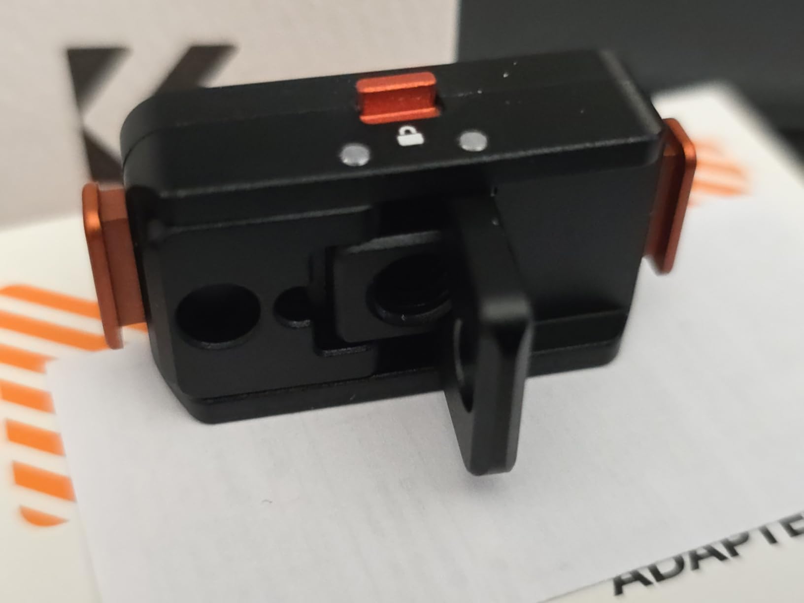 This device is machined out of metal, and is quite solid. The big distinguishing feature, though, is that it has a lock switch. When the lock is engaged, the four tabs that hold the camera can't come undone. That, plus the obvious quality, is what makes this adapter an excellent choice for your X5.