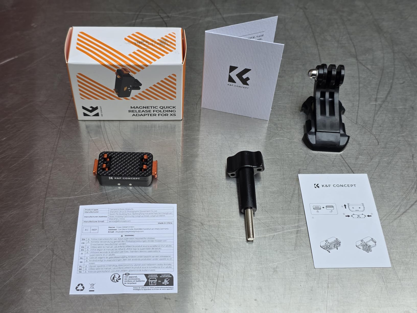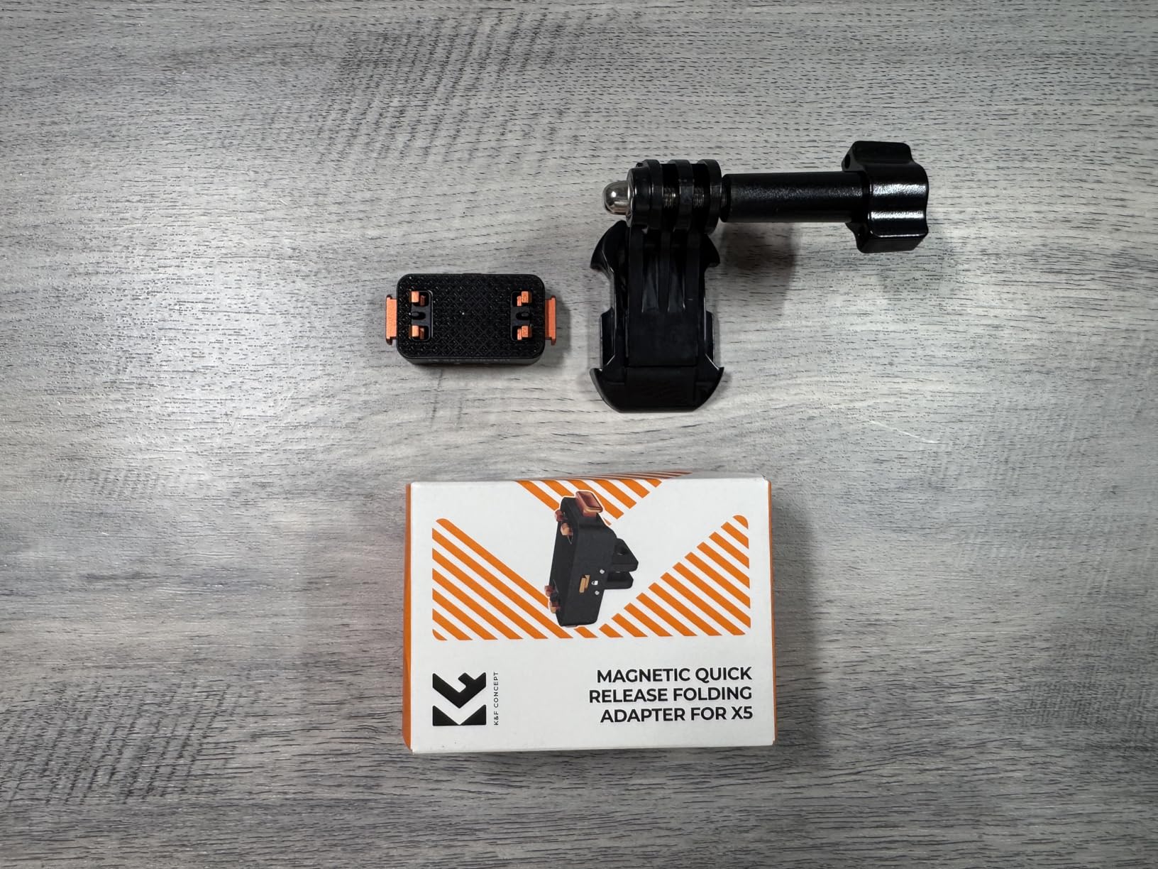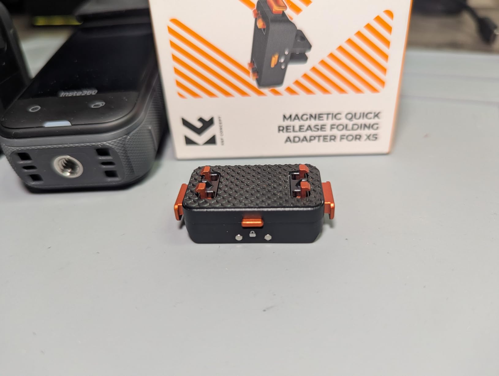This magnetic quick release folding adapter is all metal and well made. Though it has magnetic components that attract it to the camera, I notice that the connection could still be loose, so I needed to push the bottom of the adapter into base of the X5 camera until I hear a click, then I know the clips are engaged, and once I lower the locking latch, the connecting feels solid and stable. I demonstrate this in the video I uploaded. Once you ensure that everything is connected securely, it feels like another great quality equipment offering from K&F Concept.