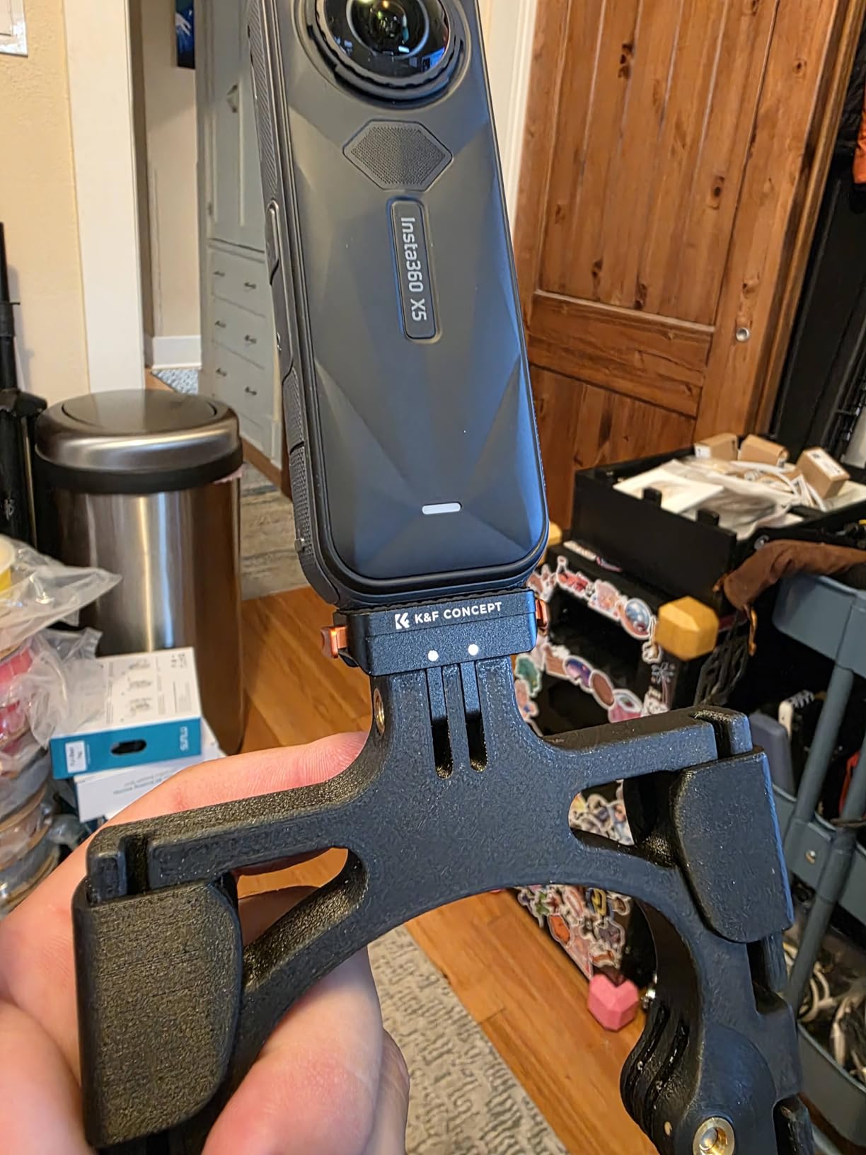 I have tried several other quick release adapters for the Insta360 X5 camera, but they all lacked a switch that locks the camera in place. This adapter by K&F includes the lock, but its implementation is a little odd, as it is an up or down switch, and may accidentally be moved when in use. This adapter is pretty nice quality, and feels premium when you are holding it. It fits my camera good, with no movement or wiggle room. I like that they give you GoPro feet, as well as a 1/4" thread to mount on all sorts of things. Overall, I like this, and appreciate that it has the lock, but wish the lock switch was smaller or a different direction so it wouldn't get hit by accident.