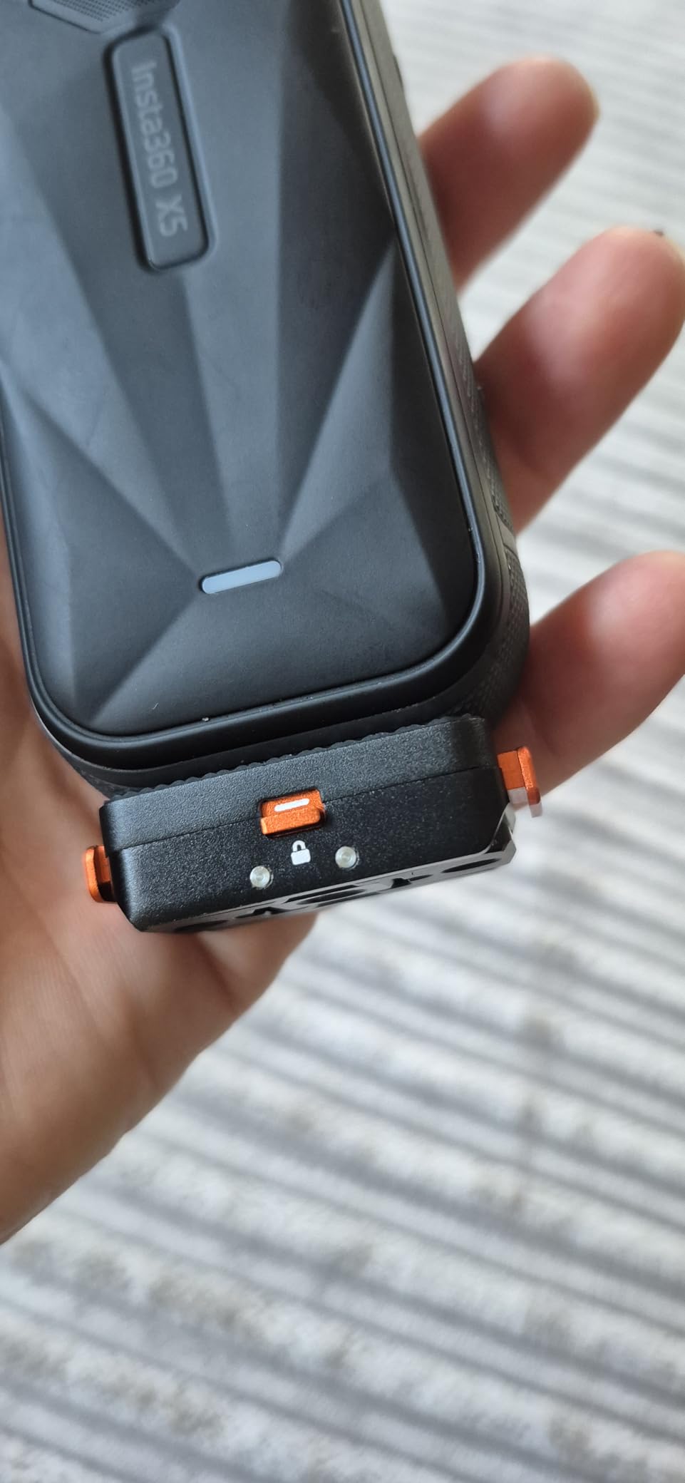 This Insta magnetic camera mount arrived in a small, branded cardboard box that also includes a GoPro type snap mount and instructions.Although this is marketed for the Insta X5 I’m using it with an Insta 360 Ace Pro 2 and it’s a perfect fit. It’s solidly built and is has all aluminium construction.Connection to the camera is quick and easy and the connection is solid. There is a small locking lever on the front and when this is pushed down the side buttons can not be pressed in to remove the camera. Once the locking lever is pushed up the mount is easily removed from the camera by pressing the two protruding buttons at either end and these are easier to use than the recessed buttons on the original mount.There are two small flaps underneath that are held in place magnetically. When these flaps are folded down the mount can be attached to a standard action camera mount. When the flaps are folded up there is a standard ¼”/20 threaded hole so it can be mounted on a tripod, magic arm etc. This makes it much more versatile than the original mount.I already have a couple of similar mounts with fold down flaps but this is smaller and what really sets it apart is the locking lever that gives you peace of mind that your expensive camera is securely locked in place.I’m impressed with the usefulness, quality and versatility of this mount and whilst it’s not the cheapest at £24.99 the build quality and materials are very good. Because of that and the locking lever it gets 5 stars.