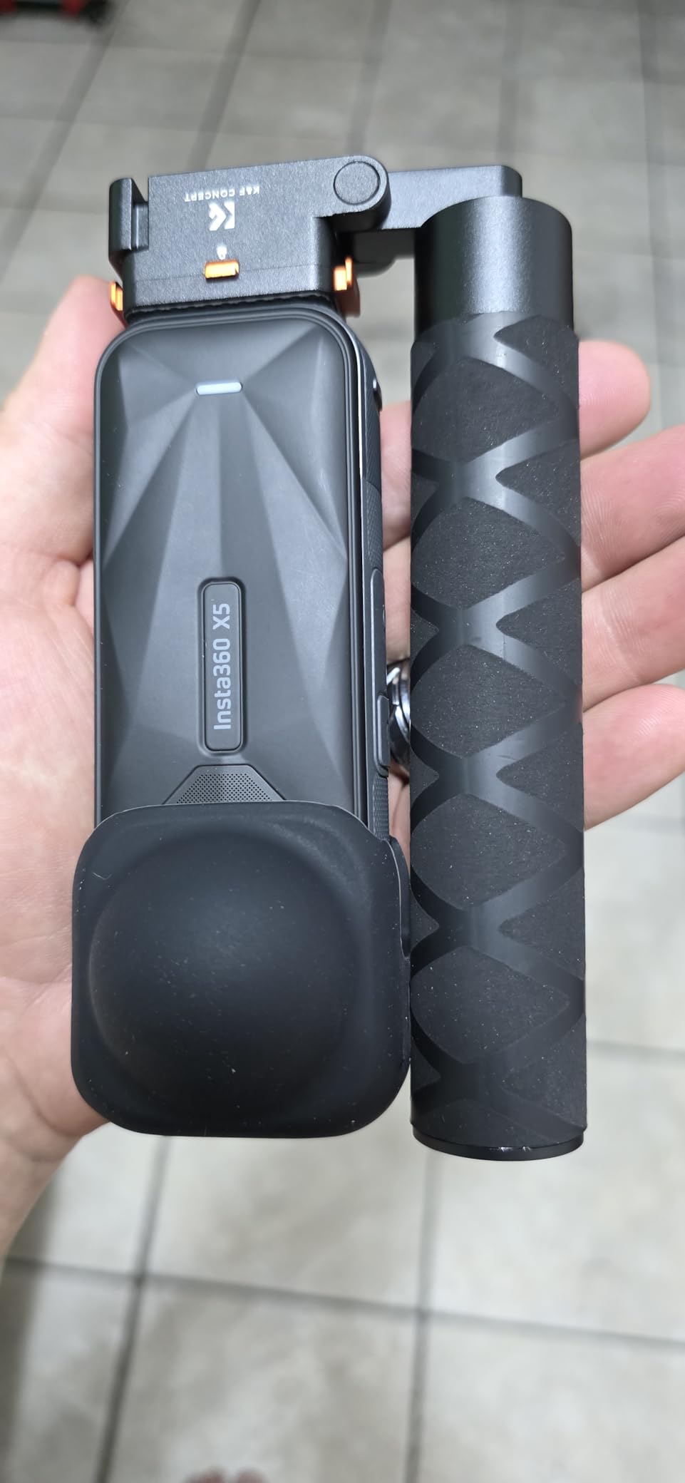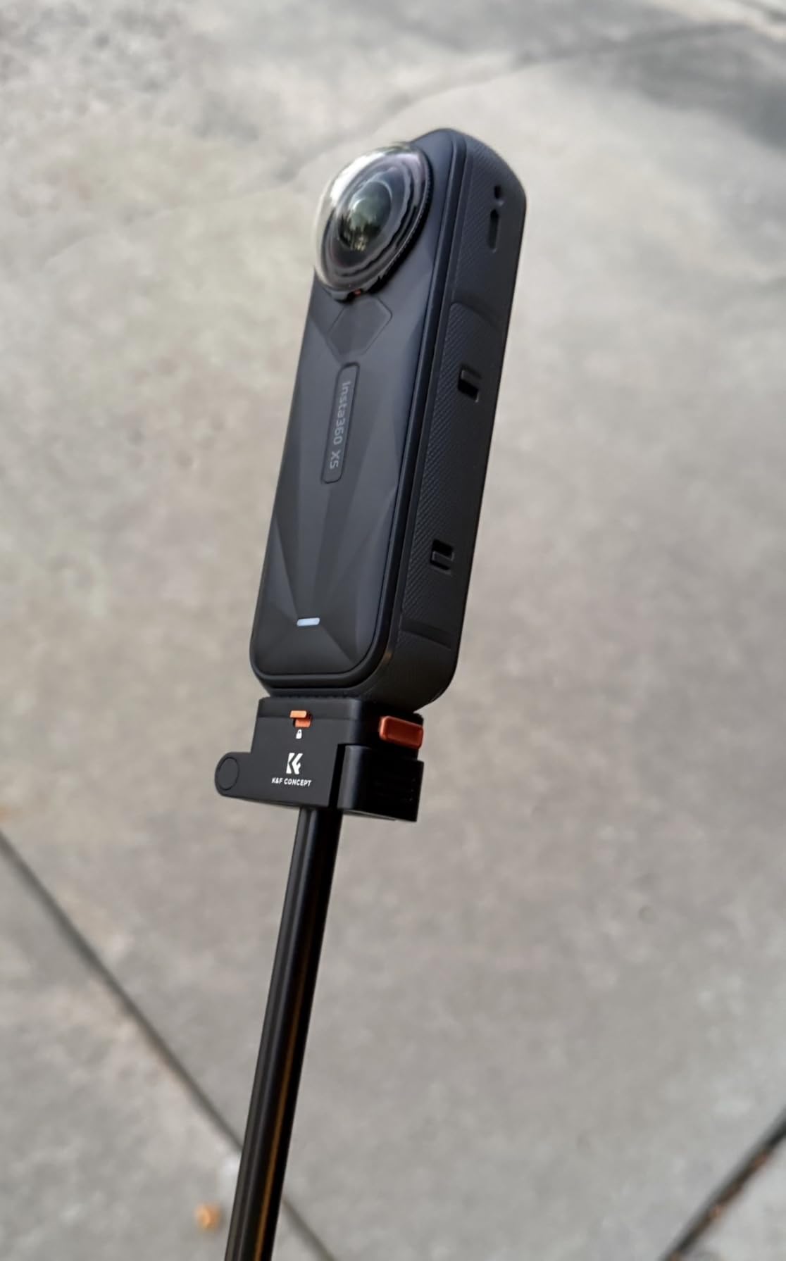 This selfie stick from K&F Concept feels very well-made and thoughtfully designed. The anodized orange metal connectors look sharp and give it a premium feel, while the rubberized grip makes it comfortable to hold and prevents slipping. The quick-release system is magnetic but also includes a locking button, so there’s no worry about accidental drops—it feels very secure.The stick itself folds down compactly for travel and extends smoothly out to 35 inches, which gives plenty of range for wide or creative 360° shots. I like that it pivots fully, letting you adjust angles easily, and it’s sturdy enough that it doesn’t wobble when extended. Since it’s designed for 360° cameras, it stays invisible in the shot, which adds to the effect of floating third-person perspectives.Another nice touch is the 1/4" screw interface at the bottom, so it can mount to a tripod or clamp when needed. The aluminum alloy construction feels strong but keeps the weight light enough for carrying around all day.Overall, this is a solid 5-star accessory. Between the secure locking, quick-release, foldable design, and premium build, it’s a reliable tool for anyone using an Insta360 X5 camera.