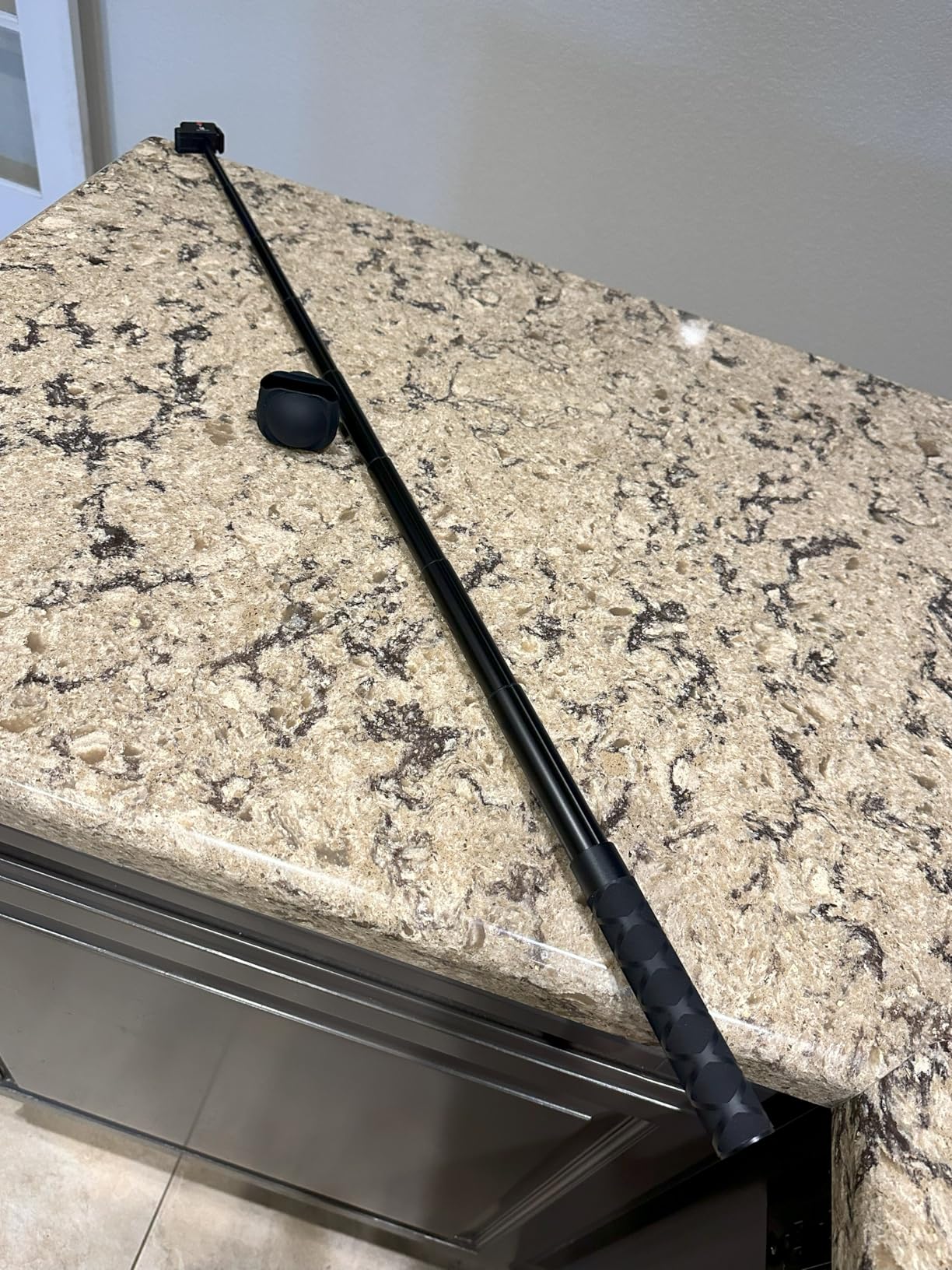 The K&F Concept stick is light and solid thanks to the aluminum alloy, with a non-slip handle that offers a good grip. It extends up to 89 cm and easily closes to less than 17 cm, very convenient to carry. The quick-release magnetic attachment works well and the automatic removal during 360° shooting is precise, making the invisible rod effect truly effective. Ideal for those who want smooth and professional footage.