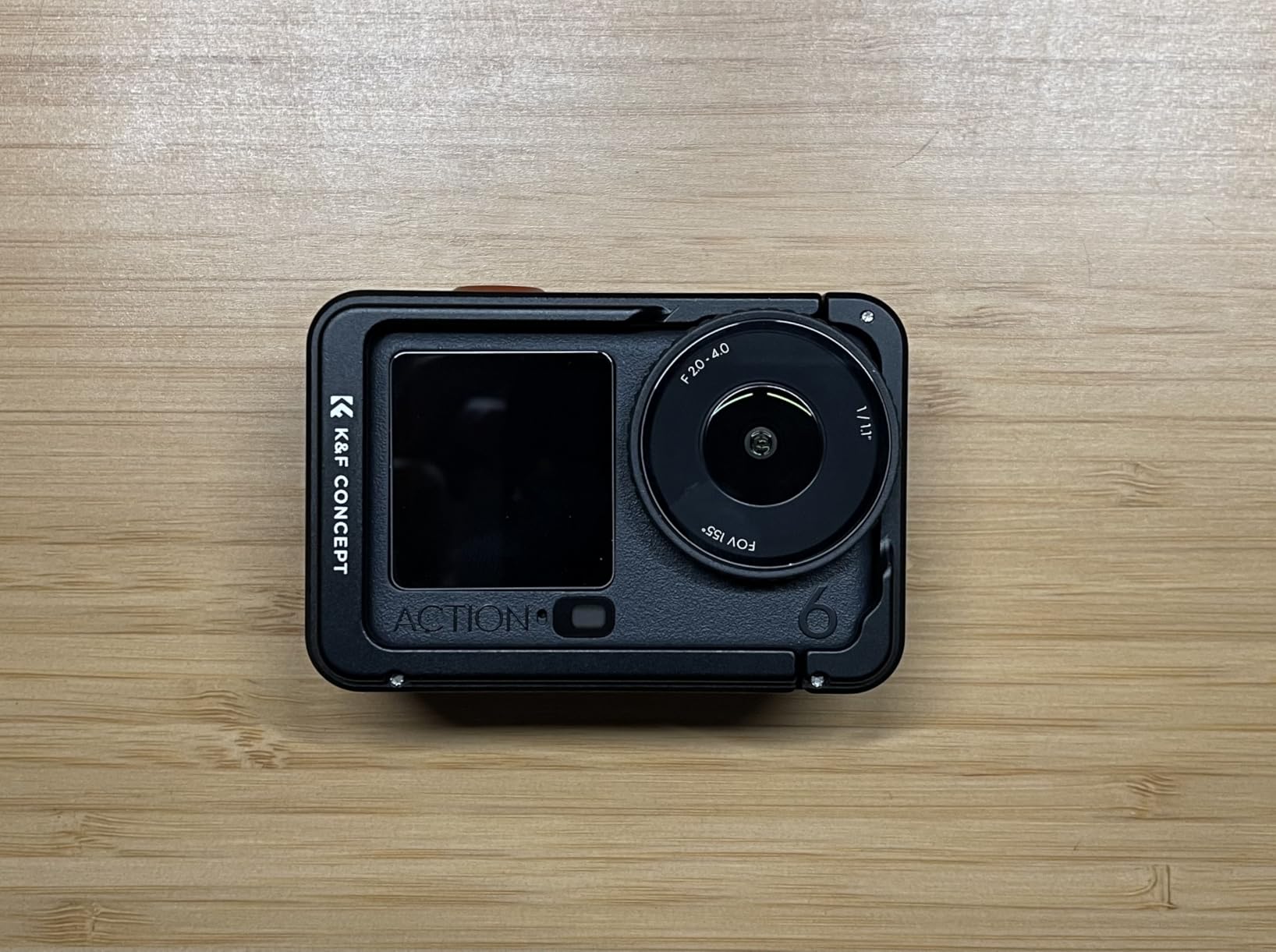 The K&F Concept aluminum camera cage for the DJI Osmo Action 6 camera is a great device to help protect and add flexibility to your camera. The cage conveniently opens to allow installation on your camera, provide a cold shoe mount, orange anodized shutter release button and on/off button. There is access to the bottom of the camera and a ¼-20 thread on one side of the cage and the other side provides access to the battery. The size of the cage is compact and barely bigger than the bare camera and the black and orange anodized finish is near perfection. The design of the cage allows full use of the cameras functionality while providing protection and additional mounting options.