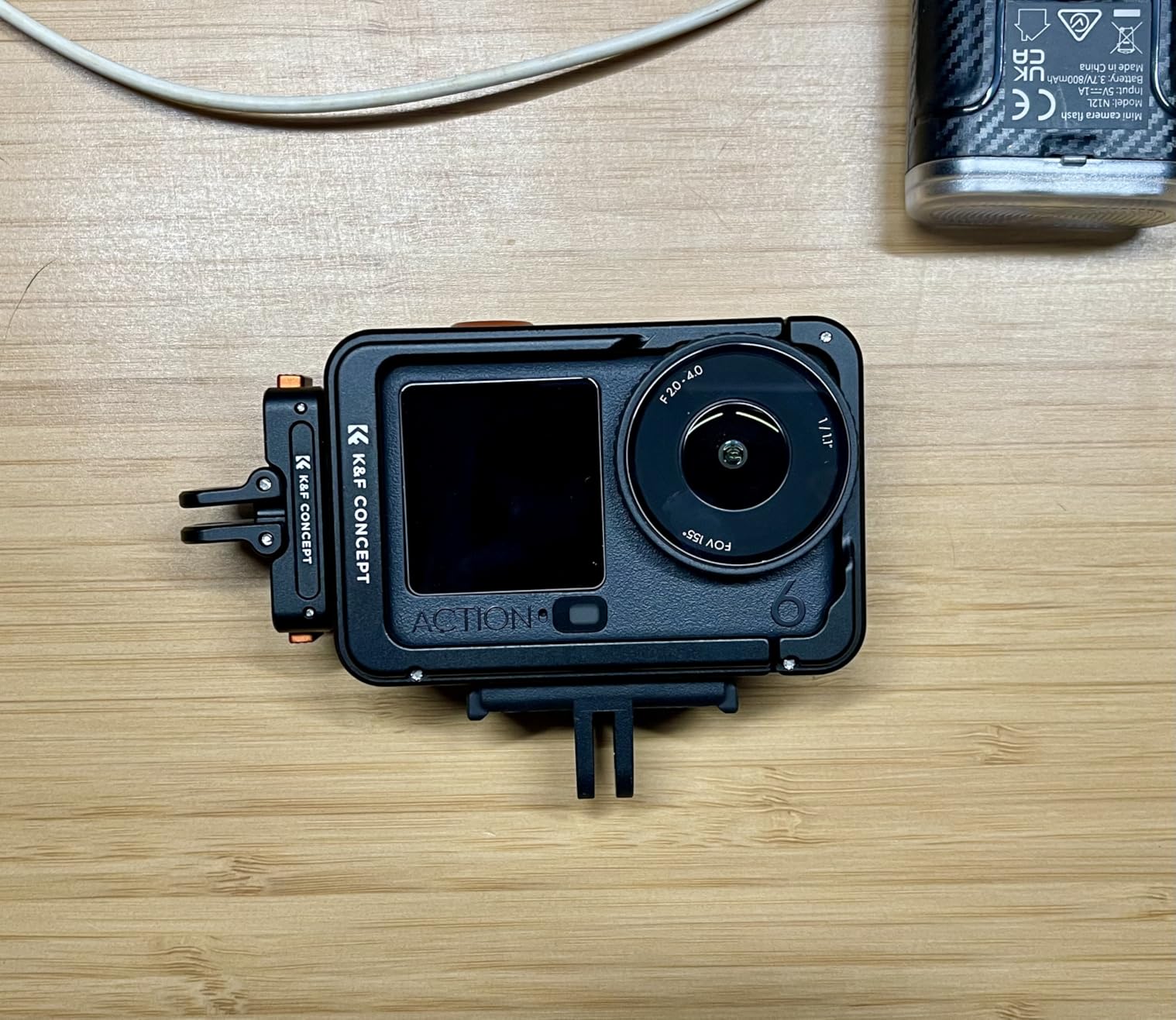 In any case, the cage fits perfectly and is well made, with clean edges, protection where it needs to be and openings where it cannot be avoided, such as for the connections, and also for any filters on the lens. It's nice that K&F has thought about the fact that the filters like to survive a bit. The cage will certainly stick to my Action6 permanently.