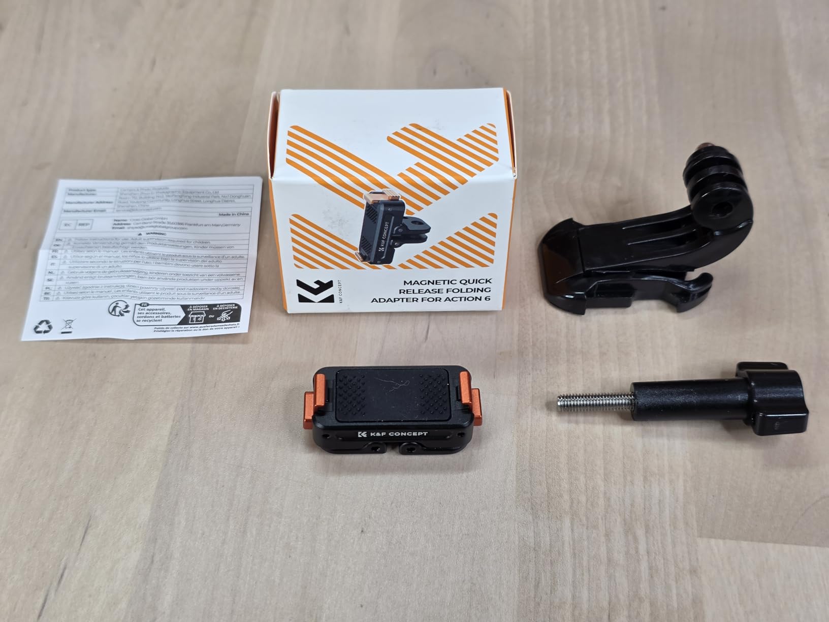 The K&F CONCEPT Magnetic Quick Release Adapter arrives well packaged, and to my surprise you get an additional plastic chest mount for your action camera.This magnetic quick release adaptor by K@F concept is extremely well made, is it so constructed of metal, Which feels extremely durable and should last a very long time.What I really like about this adaptor specifically, is the fact that has two flick pegs for mounting your action camera, along with the additional quarter inch thread on the bottom for attaching it to your tripod etc.This is a great design and more DJI adaptors should keep This design in mind! Because it's the perfect choice, If you don't want to keep swapping out adaptors constantly.I also tested this adaptor on the DJI action 5 and it did work! Although, the polarity of the magnets kept on fighting each other!So maybe the magnets are either in the wrong way of the adapter, or the DJI 6 uses different polarity magnets!I know the DJI action 6 you can use the adaptor both ways, but I didn't think the polarity was any different?I wouldn't recommend using this mount for the DJI action 5, for the magnetic polarity reason!But It does work! see photos for details.Overall, This is a very useful adaptor, It's very robust and durable, and it does what it claims.