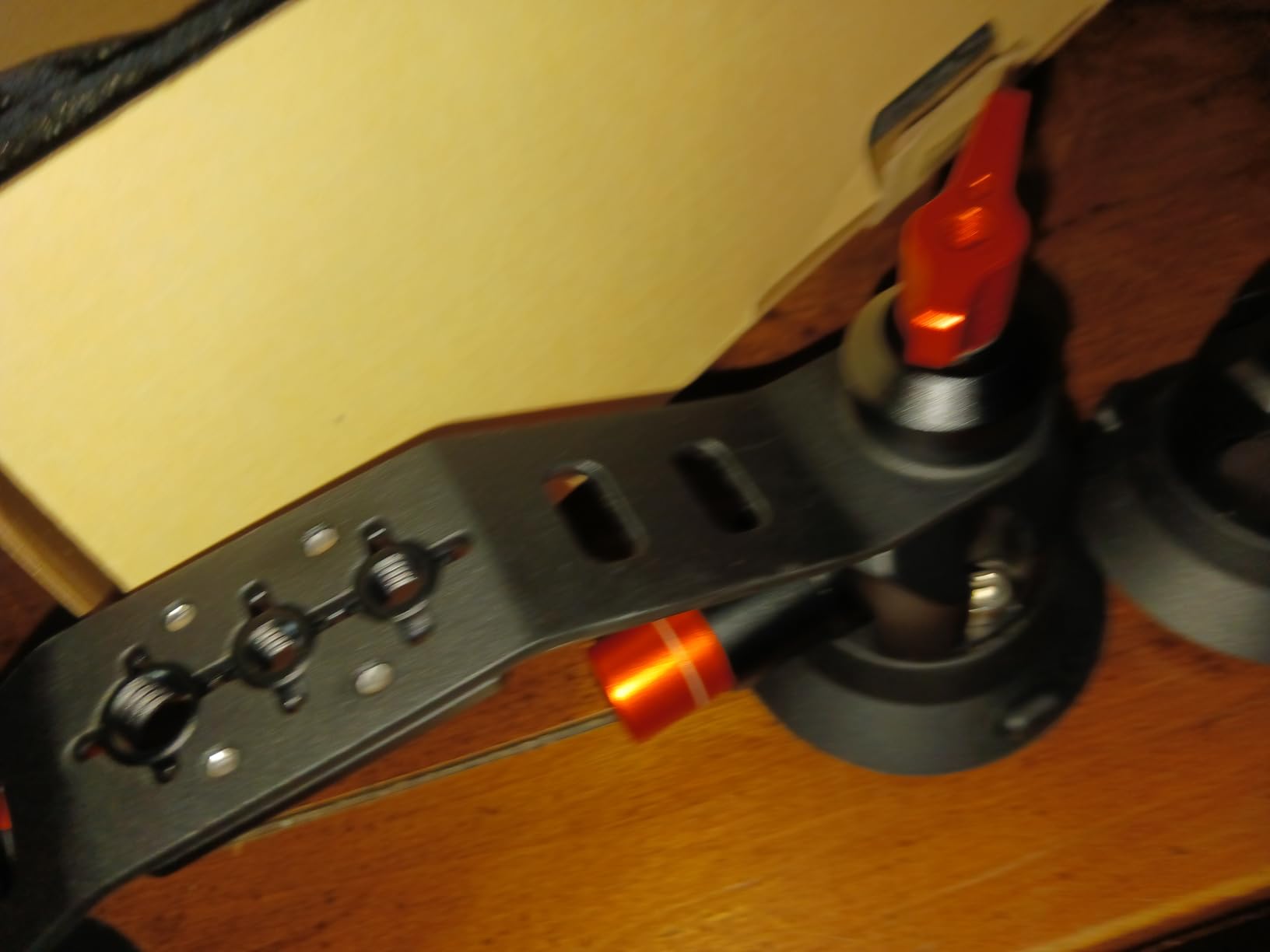 Almost every component of this is made from solid metal, even the ball joints. It has the K and F concept signature colour coding of black and orange looks very cool in my opinion. The suction cups attach to glass by way of little pumps on the side of each one. They draw air out from underneath the clamp causing a vacuum and what feels like a very firm seal. Despite the limpet like hold, they are very easy to take off, simply by lifting the side of the rubber cup at a specifically labelled point.