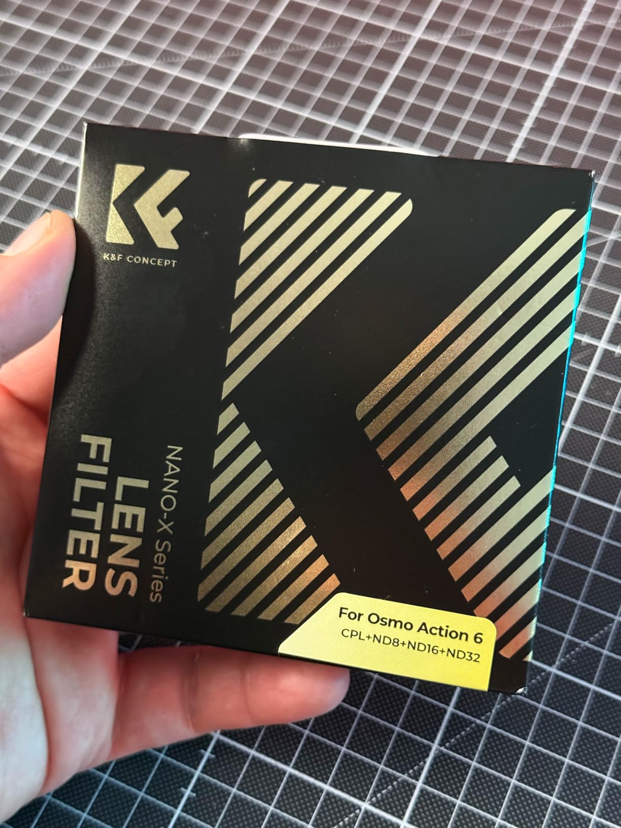 The K&F CONCEPT ND8, ND16, ND32, ND64 , Neutral Density filters for the DJI Action 6 arrived nicely packaged in a fully sealed box so dust didn't get inside the filters which is great!The filters alsocome with a mini lens cloth, So you can wipe your prince from the glass when you need to.This is a lovely kit with ND 8, 16, 32, 64, So it comes with all the main ones to slow down your shut speed so you get some nice motion blur on your video footage.I got these filters in preparation of getting my DJI action 6, I'm currently running a DJI action 5 Pro and these filters do not fit, because the action 6 lens is slightly bigger! I already knew this, but I got them anyway As I love K&F filters!K&F usually I really good with neutral density filters and I find you get less colour cast then the rest of the cheaper brands out there.Bear in mind these DJ actions 6 Pro filters are the screw in type, so they do not pop on the original lens. Have to physically unscrew the original and install these.This can be a good thing or a bad thing depending on how you look at it. Sure it takes more time, but having the screwing type there's less likely to fall off in action packed scenarios.Overall, these filters look great and they are super high quality as you would expect from a well-known brand. I have absolutely no complaints as of yet, I'll update this review when I finally get my DJI action 6.