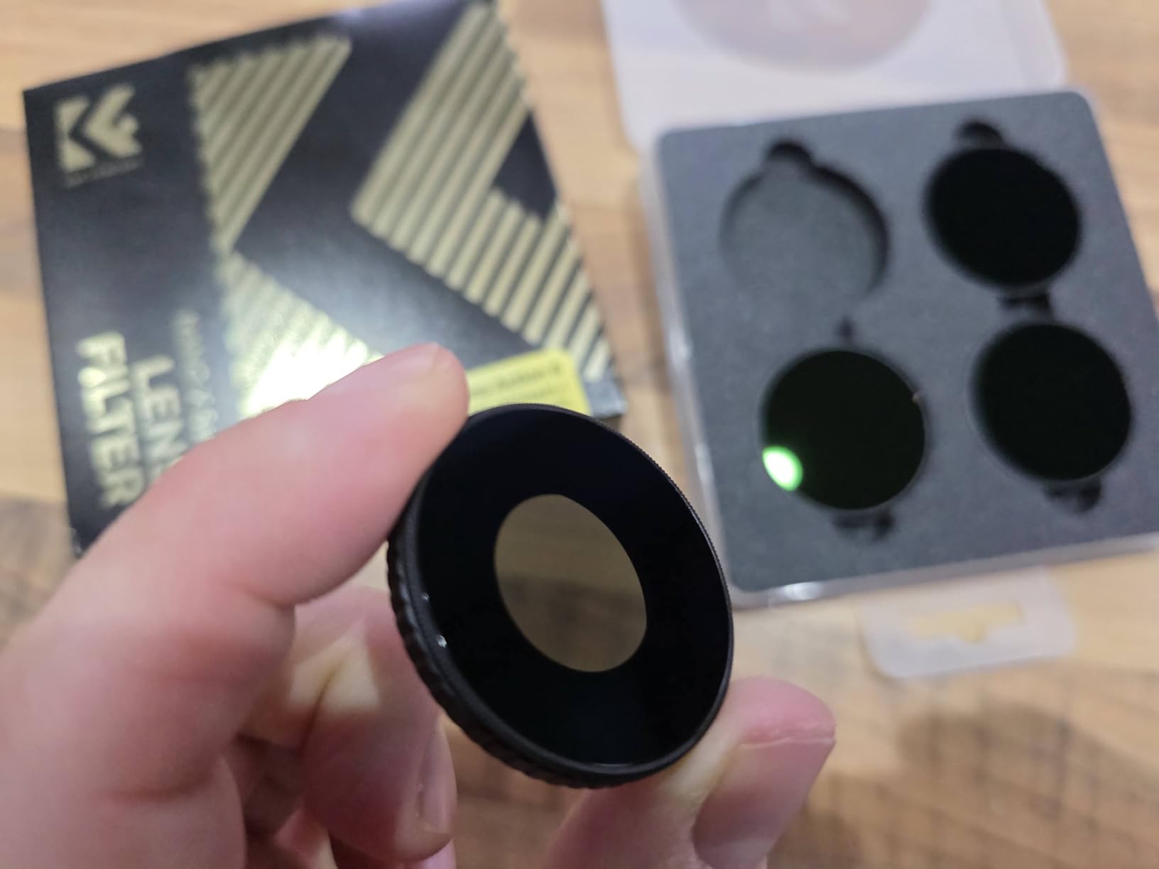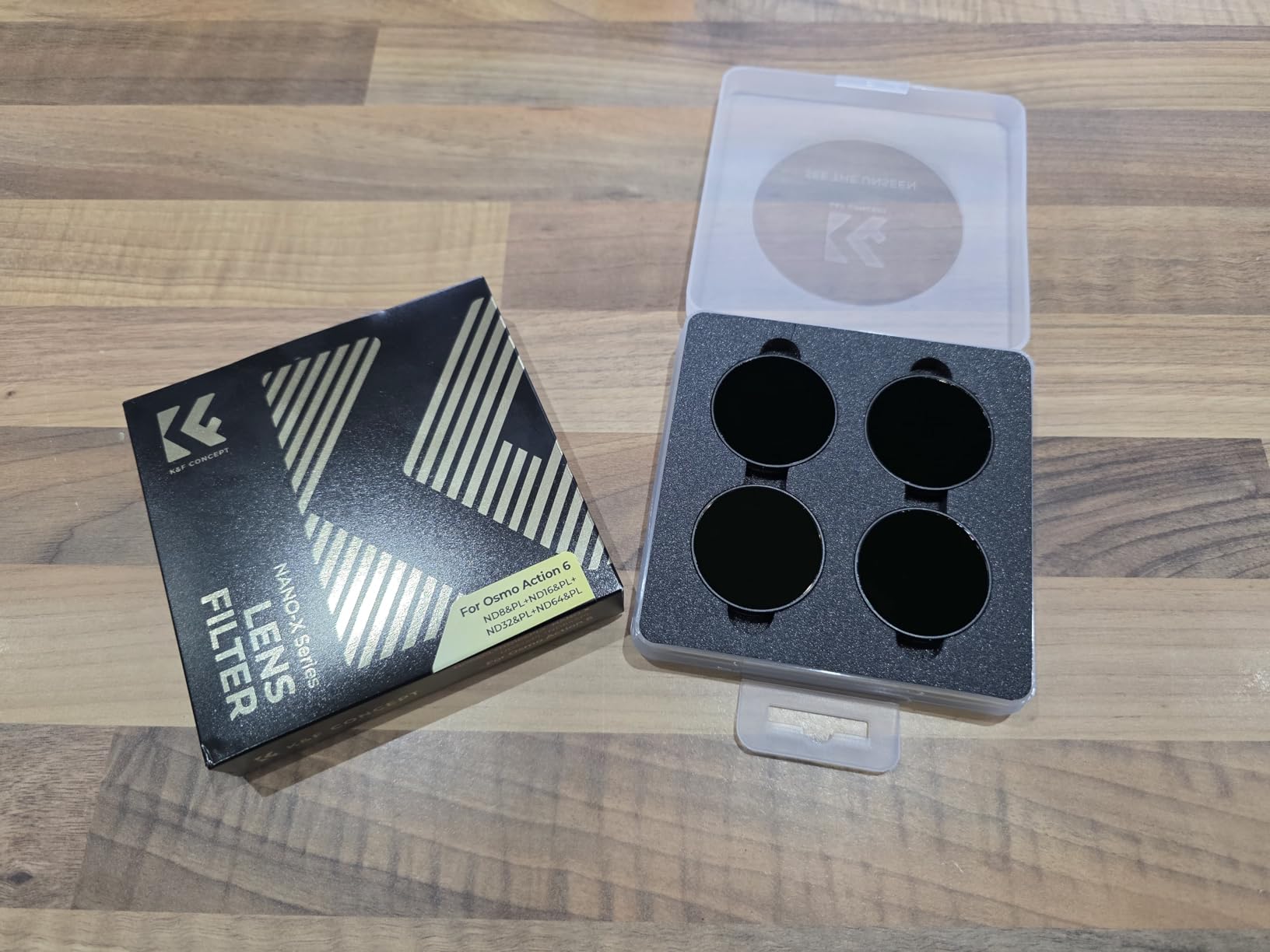 I picked up this K&F Concept ND filter set to go with the Action 6 and it’s exactly what I was hoping for. Everything feels solid and well finished, which is reassuring when you’re swapping lenses on a small action camera.Fitting them is straightforward. The screw-on design matches the original lens cover, so they go on smoothly and sit securely once in place. I much prefer this style over clip-on filters, especially for outdoor use, as there’s no worry about them shifting or coming loose mid-shoot. They also work fine with cases and accessories, which is a big plus.In use, the different strengths give plenty of flexibility depending on light conditions. Bright scenes are much easier to manage, highlights stay under control, and footage looks more natural overall. Image quality has stayed sharp, with no odd colour shifts or softness that I can see. The glass also seems to resist water and dust well, which makes them practical for real-world shooting rather than just ideal conditions.The set covers all the essentials and feels built for regular use.