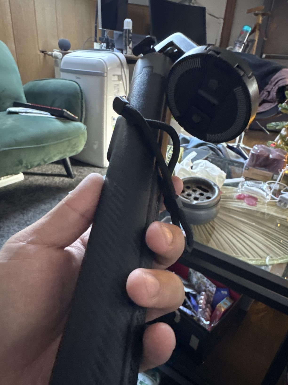 It is very convenient to use. The magnetic attachment to the mobile phone is very sturdy. The only downside: At higher heights, it can get a bit shaky.