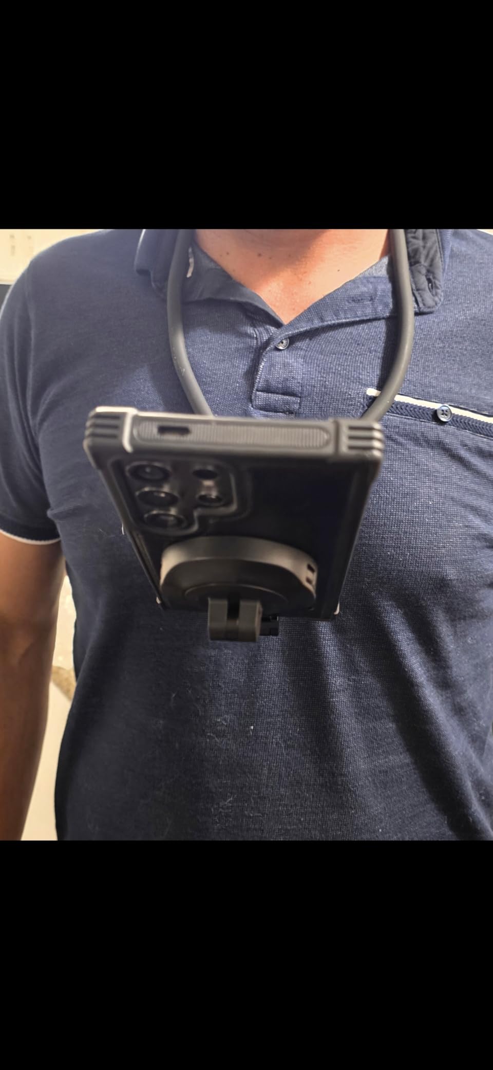 This neck phone holder is an excellent option for those seeking comfort and functionality. This accessory is surprisingly sturdy and ensures your phone stays securely in place without risk of falling. The quality of the material is evident to the touch, inspiring confidence in its durability.Designed to offer a hands-free experience, it's perfect for watching videos, making video calls, or simply keeping your phone handy while doing other activities. The holder's flexibility allows you to adjust it to the most comfortable position for you. I really liked it and definitely recommend it to anyone looking for a practical and reliable solution for holding their phone.