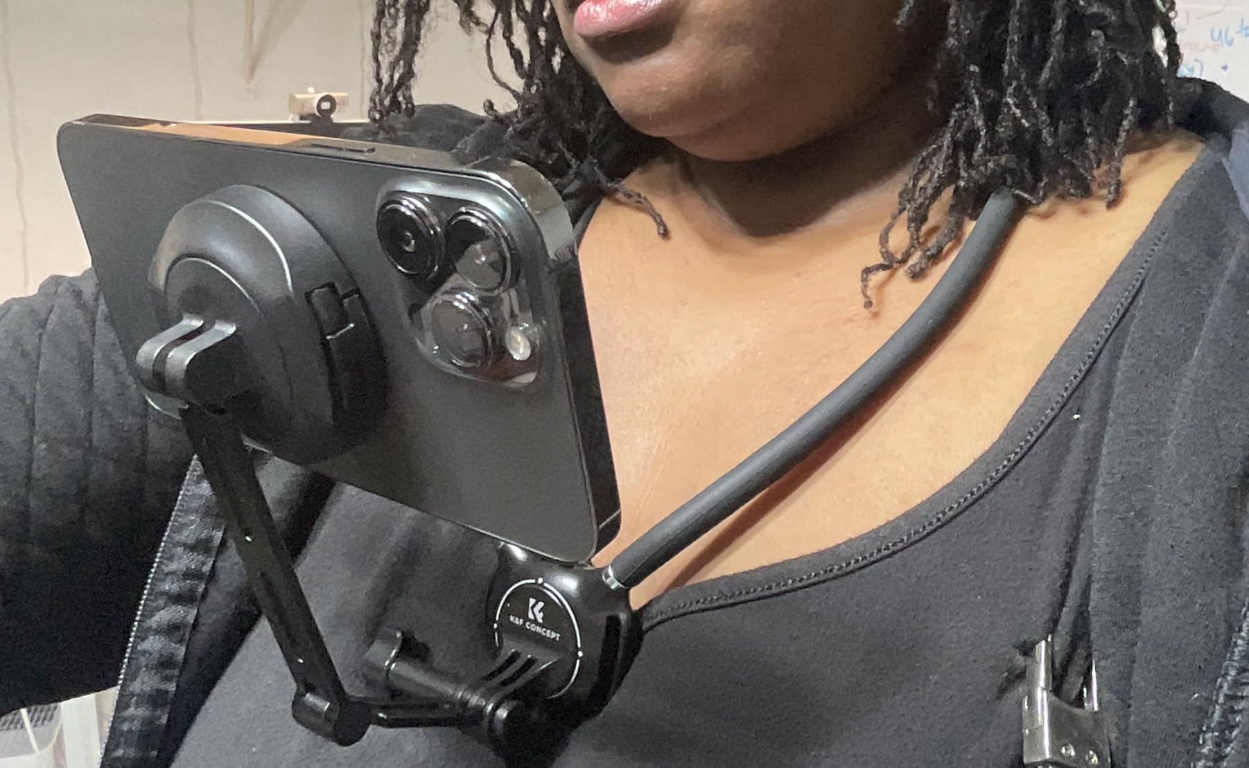 K&F CONCEPT Neck Phone Holder, 2-in-1 Magnetic & Clip-on Phone Neck Holder, POV Phone Holder, Hand Free Chest Stand Compatible with iPhone 17-12 Seires Android PhonesThis definitely allows hands free filming and is comfortable to do so.The ability to bend the phone view at different locations on the holder is a huge plus.The magnetic grip is STRONG and my iPhone pro max is heavy and it never slipped while in use.The set also comes with a magnetic ring if needed and other accessories.I even bent the neck base and molded it into a tripod of sorts, sat it on the table and it held my phone to get some closer angles hands free as well.Definitely worth the price for content creation!